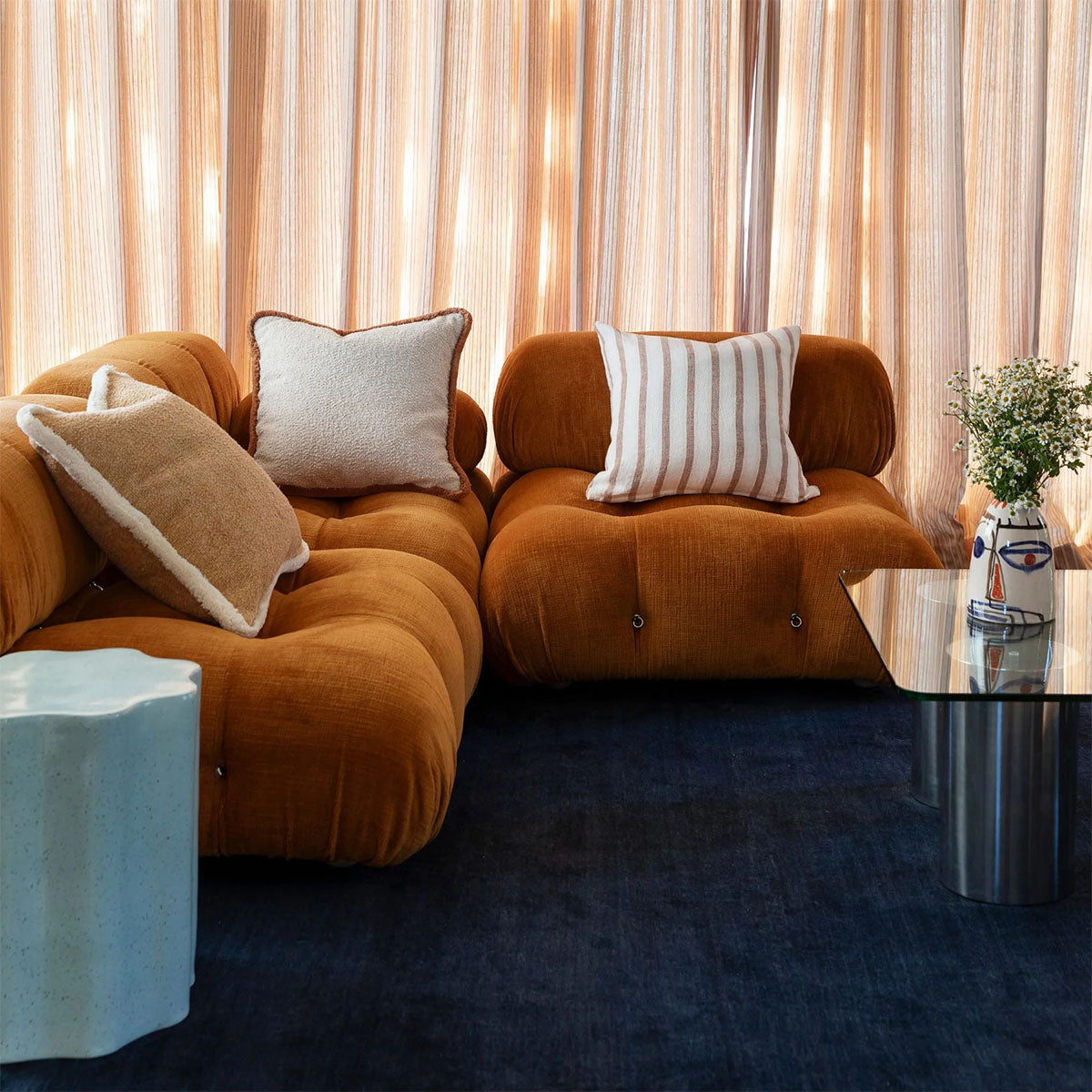 The Grain Cream Cushion brings warmth and texture to any space with its soft boucle-style fabric in a neutral cream tone. Framed by a contrasting rust-colored fringe, this cushion adds a subtle pop of color while maintaining a refined aesthetic. Perfect for layering on a sofa, bed, or armchair, its plush fill provides both comfort and style. A versatile accent for modern and classic interiors alike, it's an effortless way to refresh your decor.