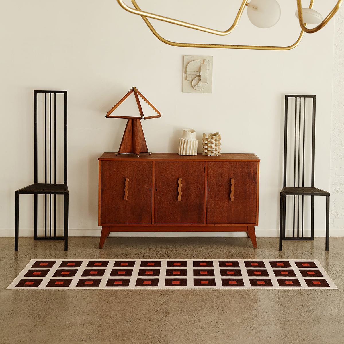 Playfully modern, the Square Chenille Rug is a contemporary interpretation of the classic Mid-Century Modern style. Available in two vibrant colourways, this rug features a geometric array of gridded squares over a cream background for a freshly styled look that elevates any living space. Its low-pile chenille texture is both machine-washable and stain-resistant to provide easy cleaning and durability. This practical rug comes apart in two layers, a nonslip base for grip and stability, and a removable top layer that you can throw in the wash over and over again.