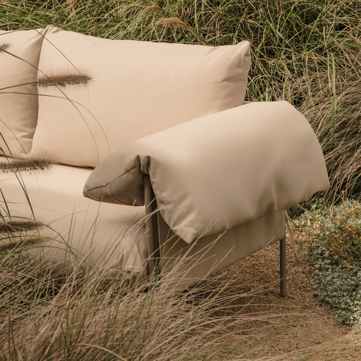 Ready for her moment in the sun, the Alva Outdoor 2 Seat Chair is the Alva armchair, reimagined as a loveseat. Upholstered in hard-wearing outdoor fabric, her powder-coated steel frame is complemented by two oversized cushions in a versatile neutral colourway. Its comfortable foam filled seat is also quick to dry, making this stylish piece the perfect way to elevate your alfresco experience. ELLISON STUDIOS. is a leading Australian brand with pieces inspired by 70s design and laid-back living, available exclusively at Life Interiors.