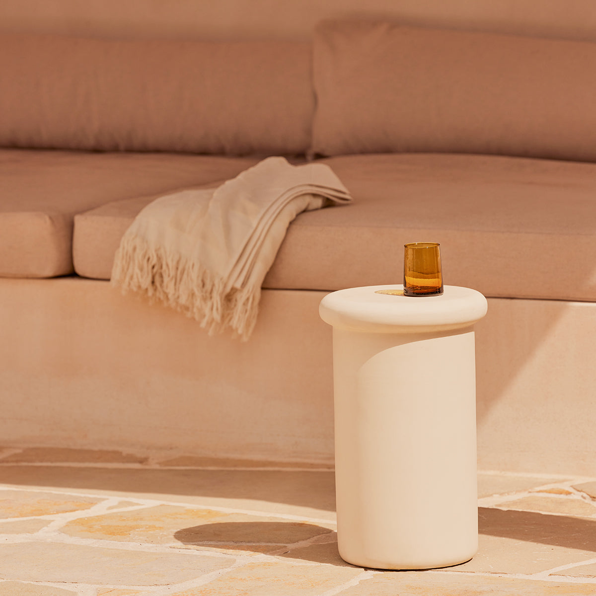 With her commanding legs and gentle bullnose profile, the Earth Outdoor Cocktail Table by ELLISON STUDIOS. combines elements of femininity with stability and scale. From her concrete construction in the colour Husk, her organic tones ensure she will look right at home whether poolside or alfresco. ELLISON STUDIOS. is a leading Australian brand with pieces inspired by 70s design and laid-back living, available exclusively at Life Interiors.