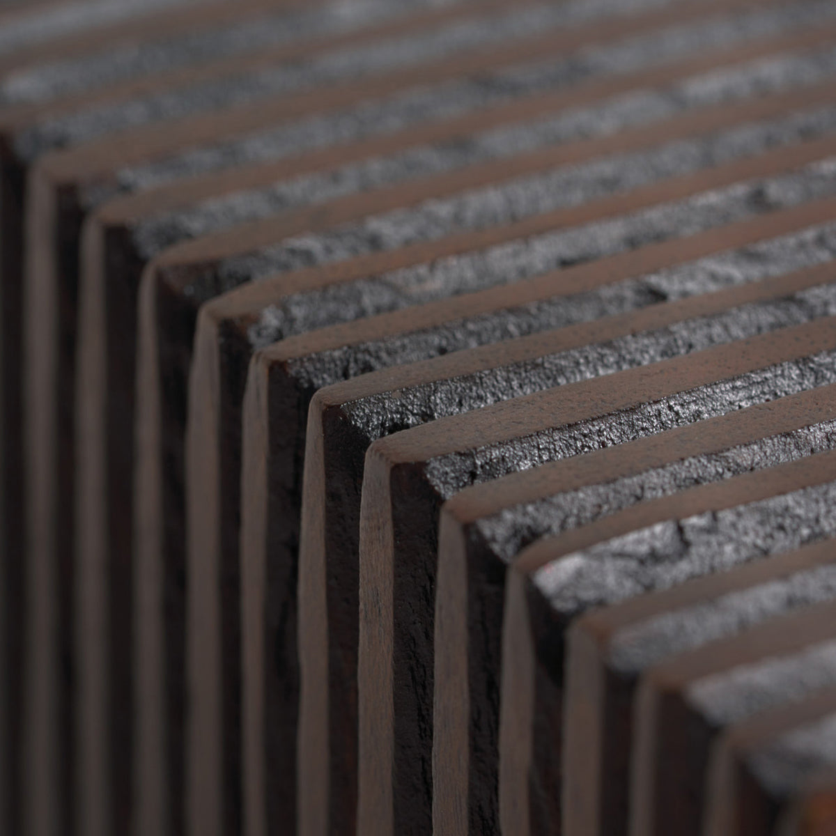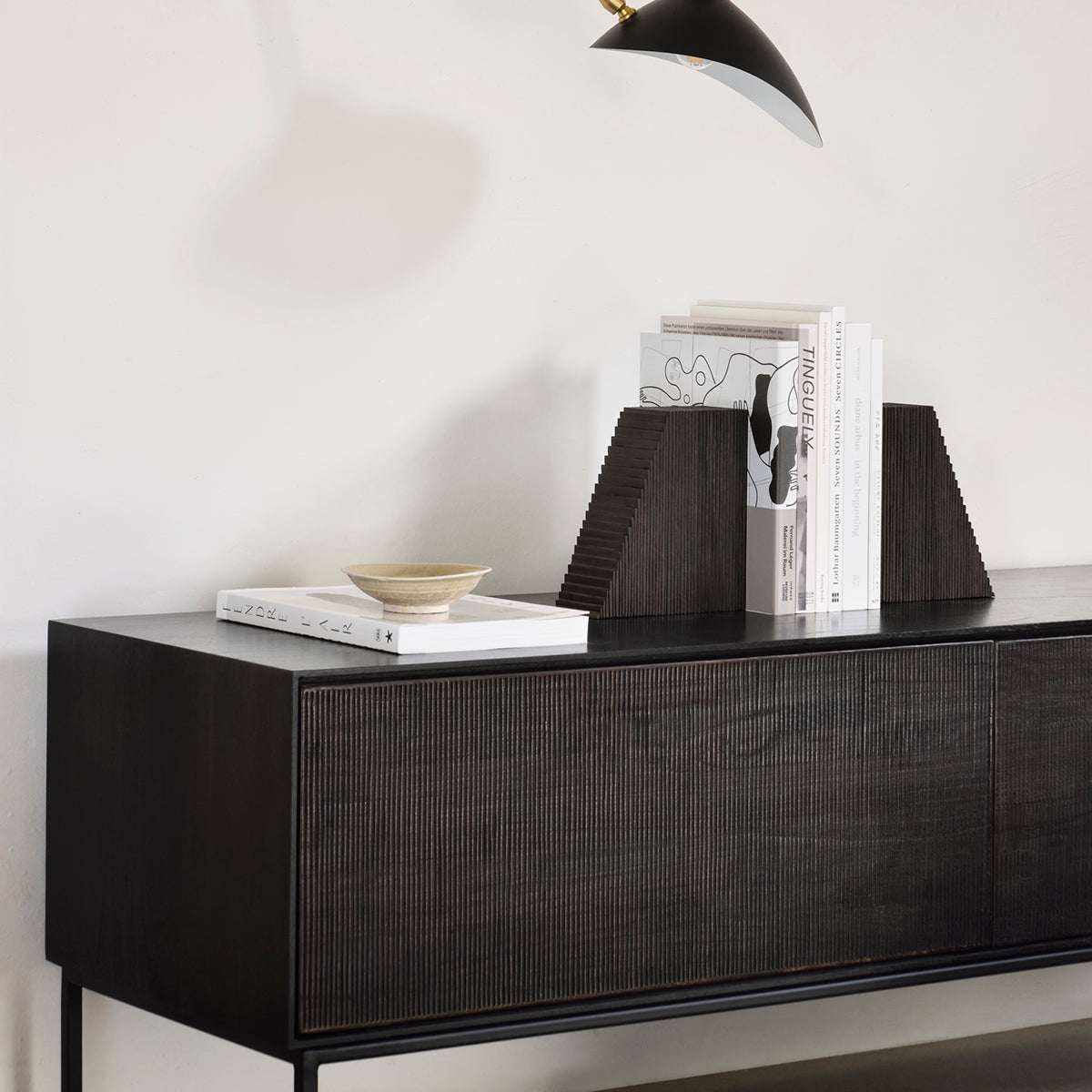 The Grooves book ends are soulful to say the least. Every single line you see is hand carved, making each piece truly unique. Small imperfections are part of the story, even more so: they enhance Grooves' character. The result is a slightly different surface every time, each with its own rhythm and dynamics. Made from solid mahogany finished with a dark brown varnish, these book ends complement the wider Grooves collection.
