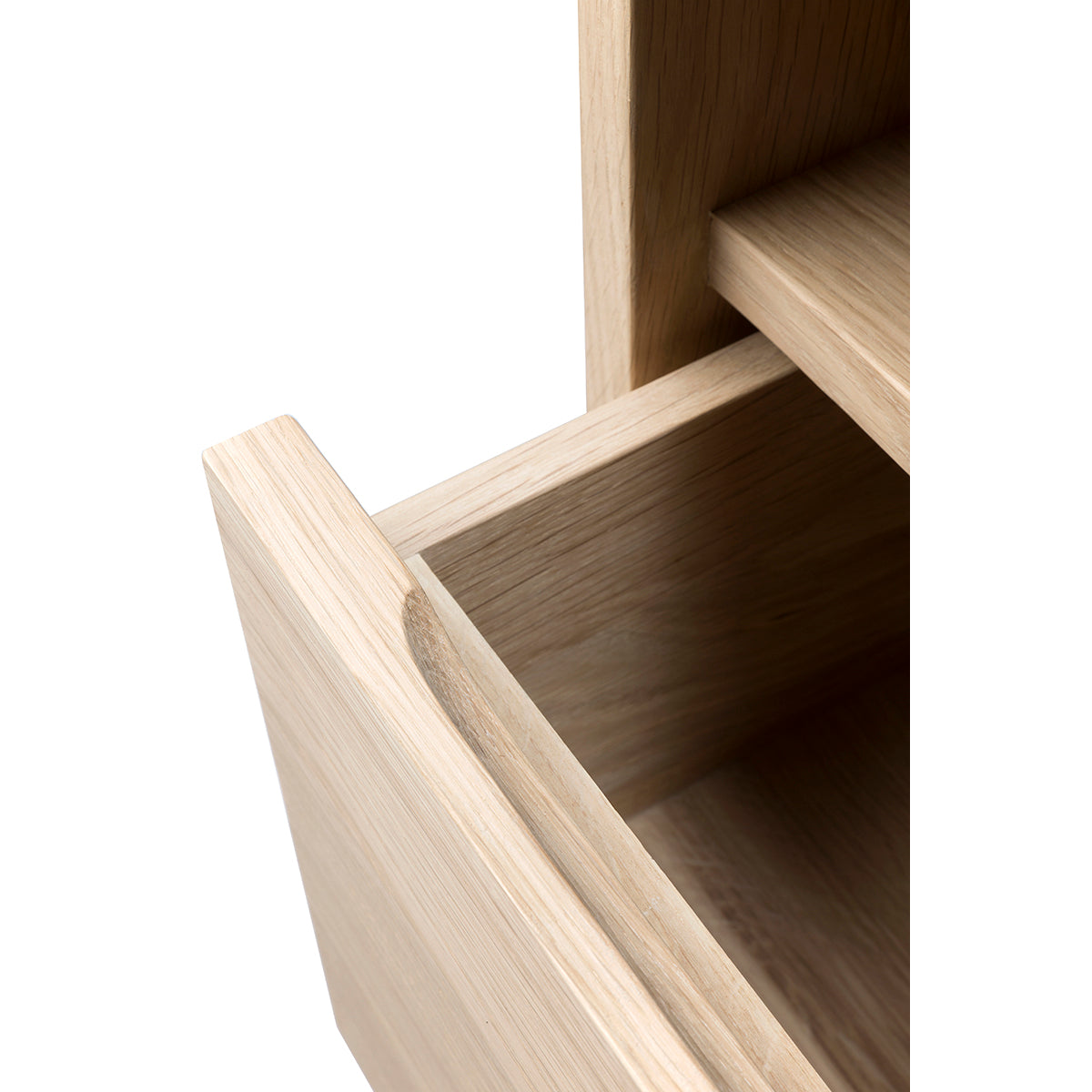 A clean and pure look with black metal legs, the Ligna TV cupboard in solid oak offers a perfect storage facility for the living room.
