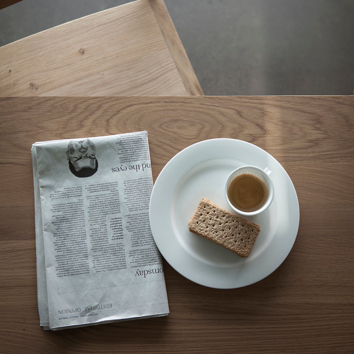 A seemingly simple and straightforward piece, the Slice solid oak dining table's subtle corner details add playful sophistication to the functional piece.