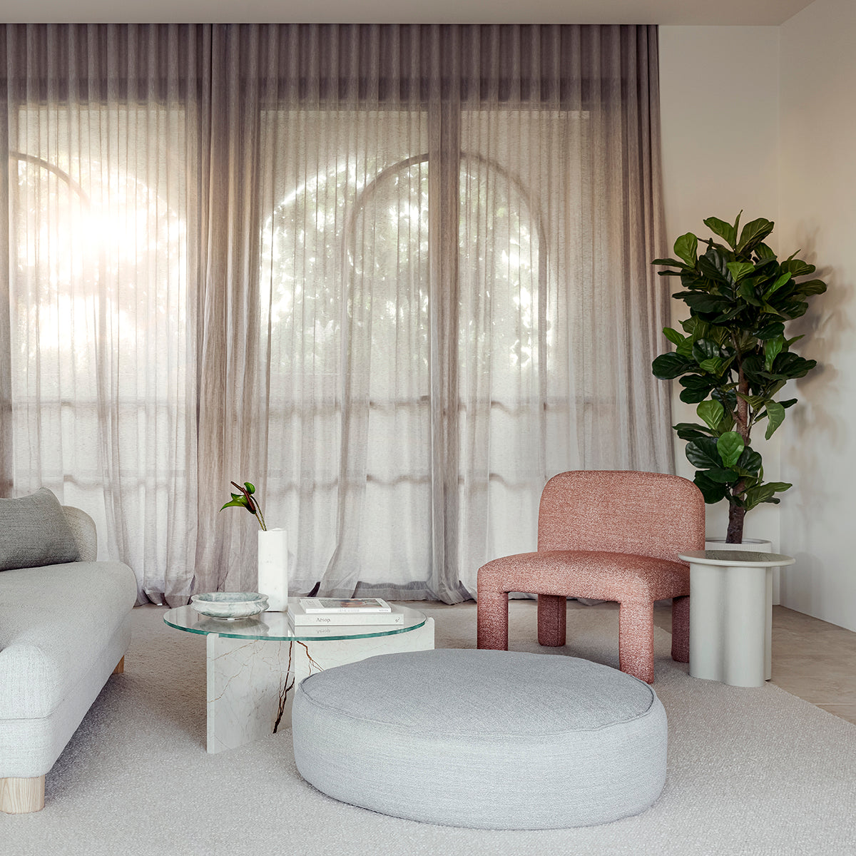 An abstract pillar base makes the Artie Wave side table a standout choice to lend drama to any room.