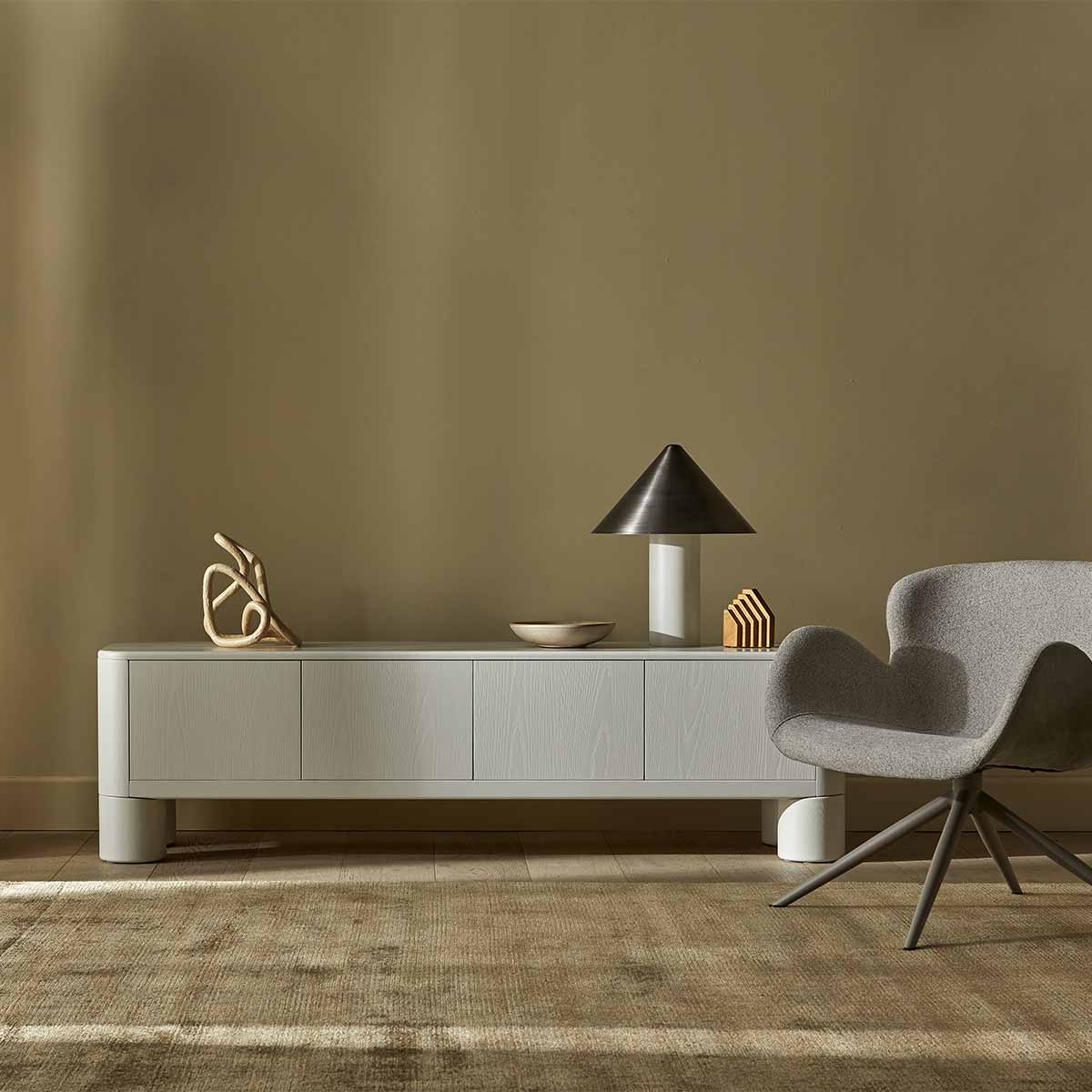Elevate your living space with the Frankie Entertainment Unit in Fossil. Featuring a low-profile design and painted ash finish, this unit offers a modern aesthetic. Hettich hardware ensures functionality, while ample storage space keeps your media organized. Ideal for contemporary interiors, it combines style with practical benefits.