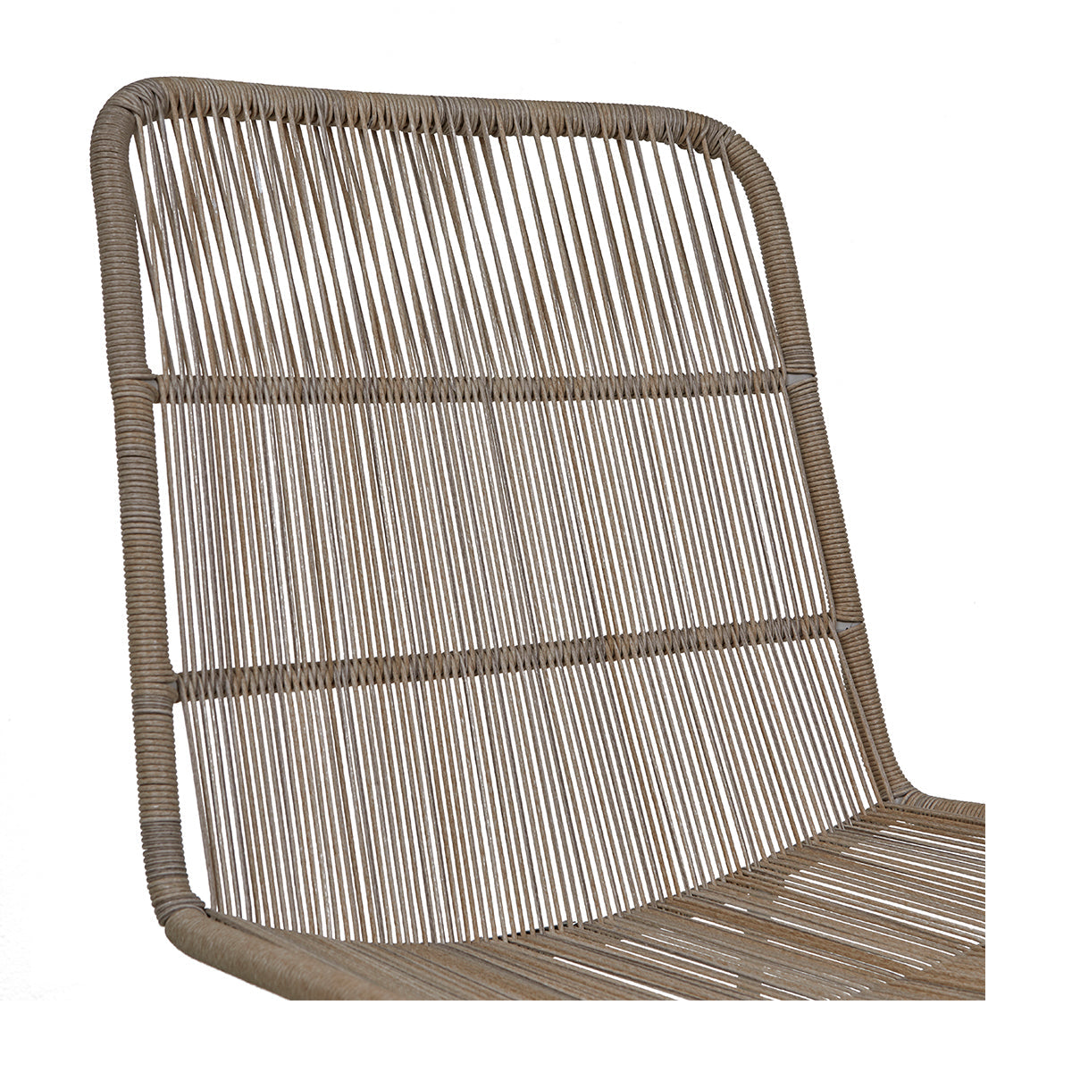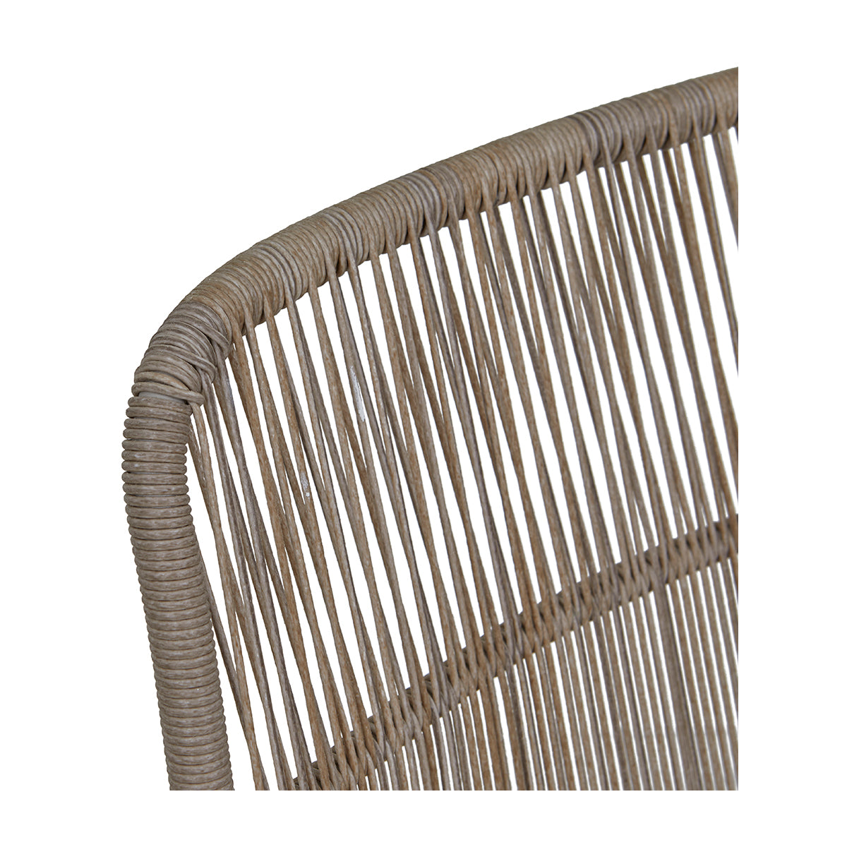 Enjoy alfresco dining style with the charming Granada Sleigh Dining chairs. Boasting a woven construction with visible galvanised metal frames, this stackable chair features ergonomic design and mid-century inspiration that help create an inviting outdoor retreat. Reminiscent of classic rattan furniture, the vertical weaving pattern adds subtle textural interest to the ensemble.