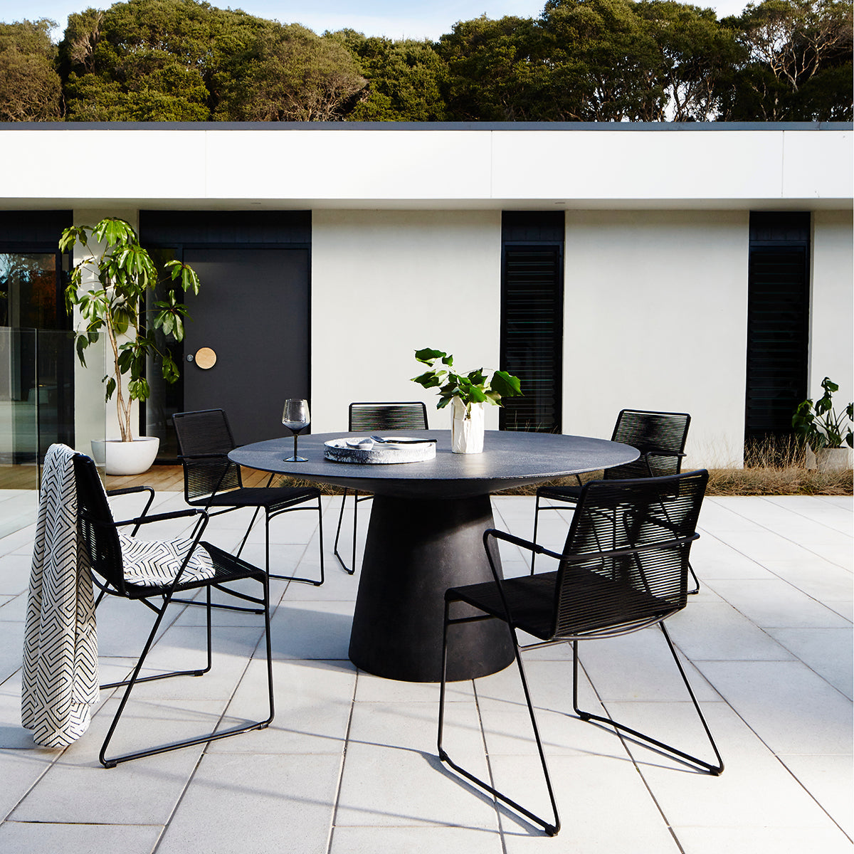 Minimalism takes a sculptural turn with the Livorno Round Dining Table. Boasting a lush round silhouette, this stunning piece is bound to become the centrepiece of your dining space. Crafted from fibrestone, its bold pedestal base provides a solid foundation for the spacious tabletop to provide stability and durability. This dining table is a sturdy piece with a timeless form that is designed to last your home for years to come.