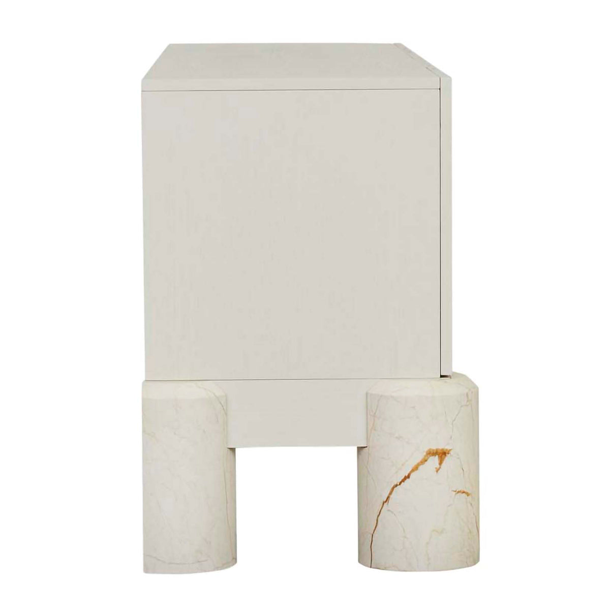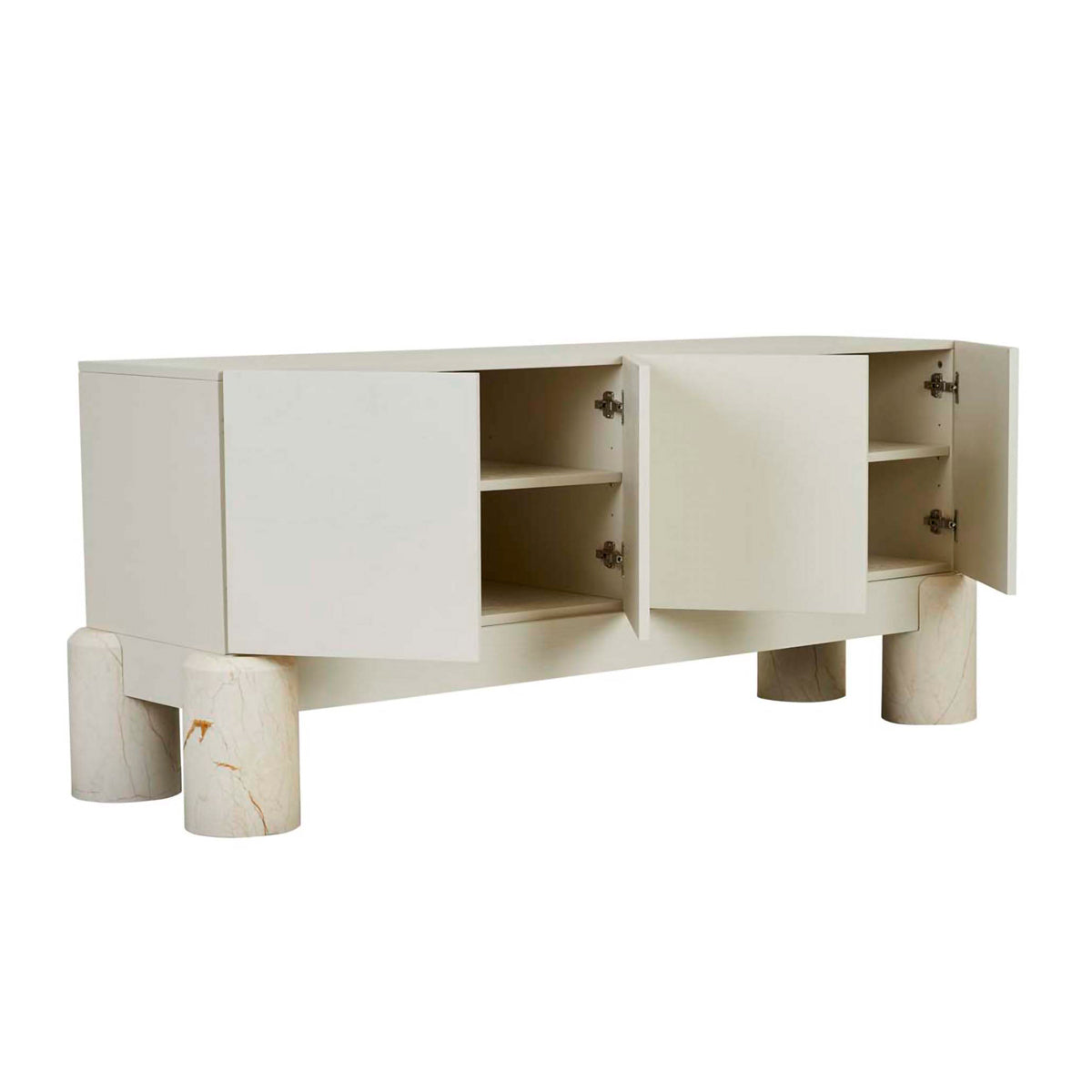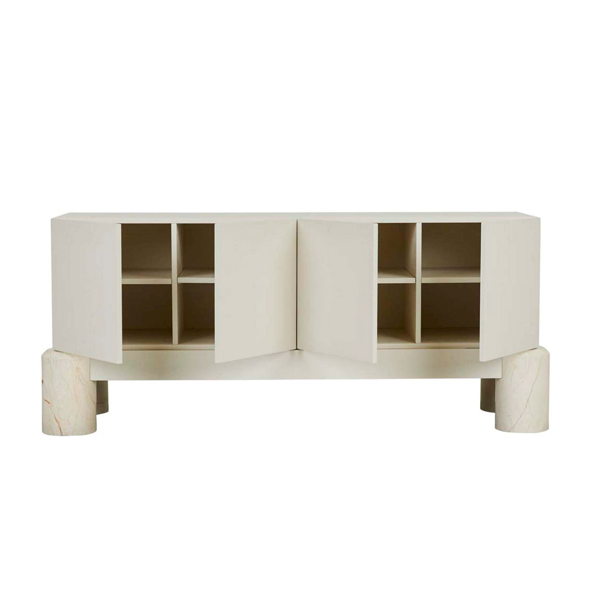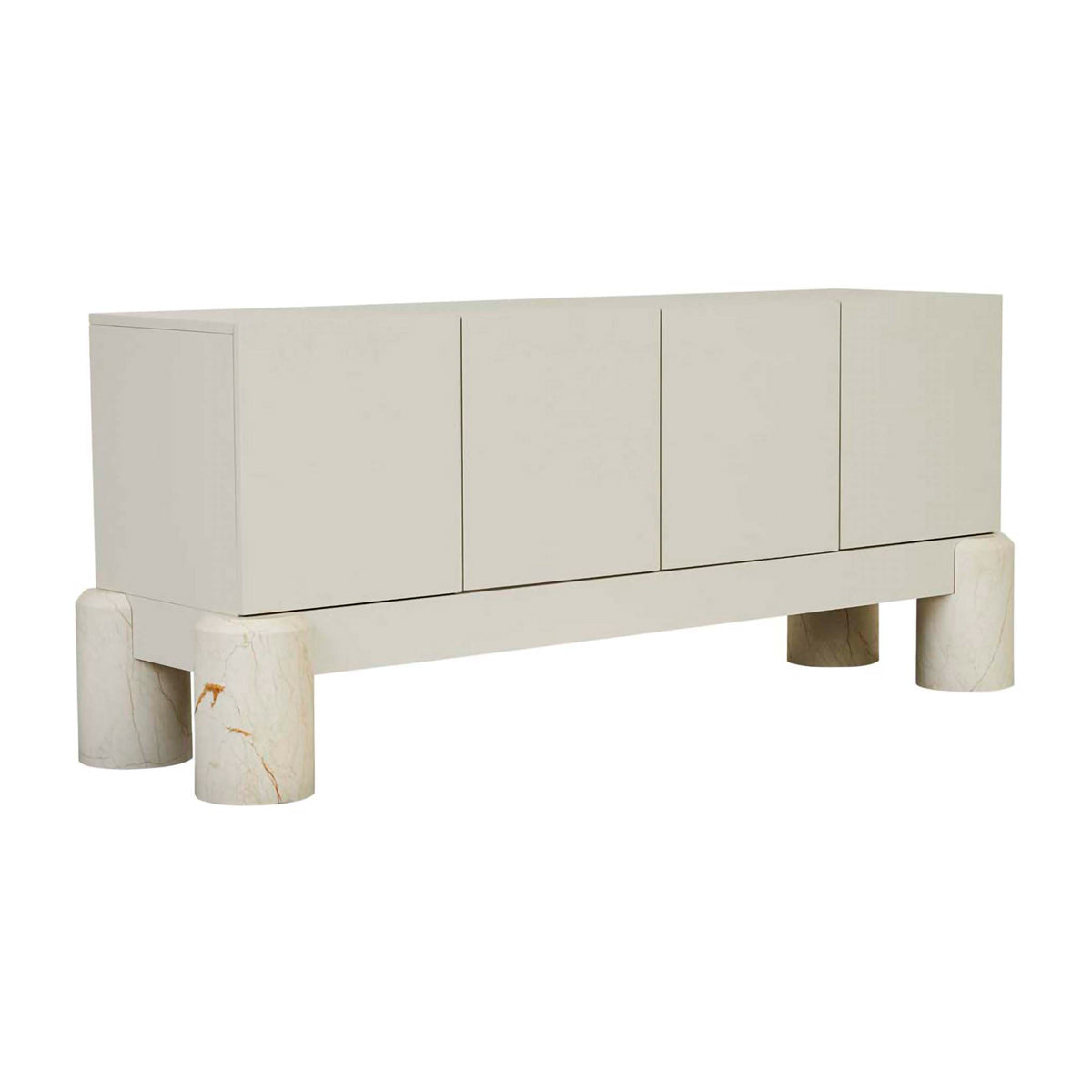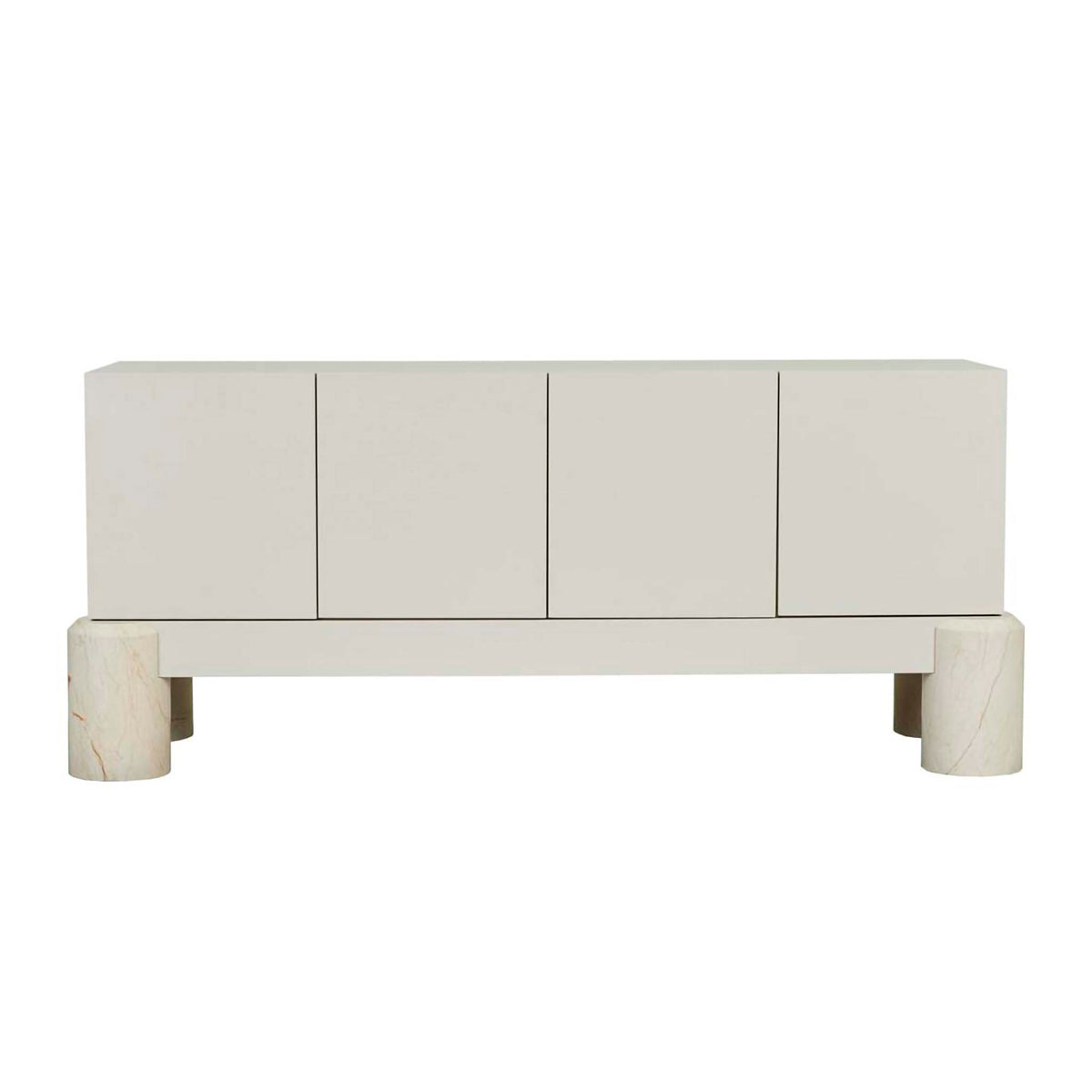 The Pablo Buffet blends sleek minimalism with a sculptural presence, making it an elegant focal point for any modern dining or living space. Its clean-lined design showcases four seamless cabinet doors, offering ample storage for dining essentials or media equipment. Elevated by bold, rounded marble legs, this piece balances strength and sophistication. The neutral finish complements various interior styles, while the unique base adds a subtle touch of luxury to any setting.