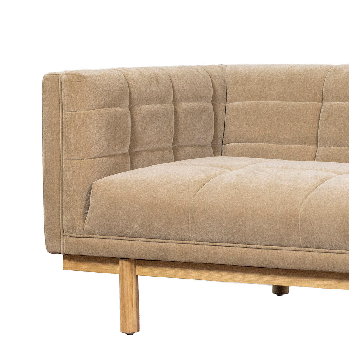 Drawing inspiration from both mid-century and contemporary influences, the Mulholland Sofa is a tailored design with distinctive tufting on the seat, arms, and back that creates subtle character and an attractive, modern aesthetic. With no cushions to adjust, the tuxedo-style frame creates an enveloping space where everything stays in place and looks beautiful day after day. An eco-friendly, solid wood perimeter base with notched-dowel leg details softens the overall look and adds warmth to the design. All wood inside and out is FSC-certified in support of responsible forest management. Part of the Mulholland Series, the Sofa matches perfectly with the Mulholland Chair, Lounge, and Bi-Sectional.