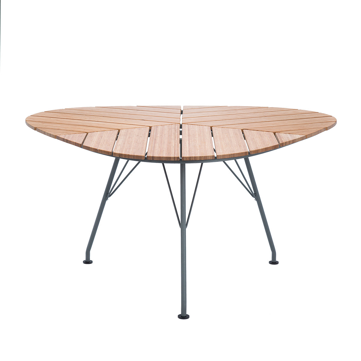 The Leaf Bamboo Outdoor Table, a beautiful garden table that really looks like a leaf. The triangular form and the table construction which is drawn under the table makes it possible to seat 9 people around the table.