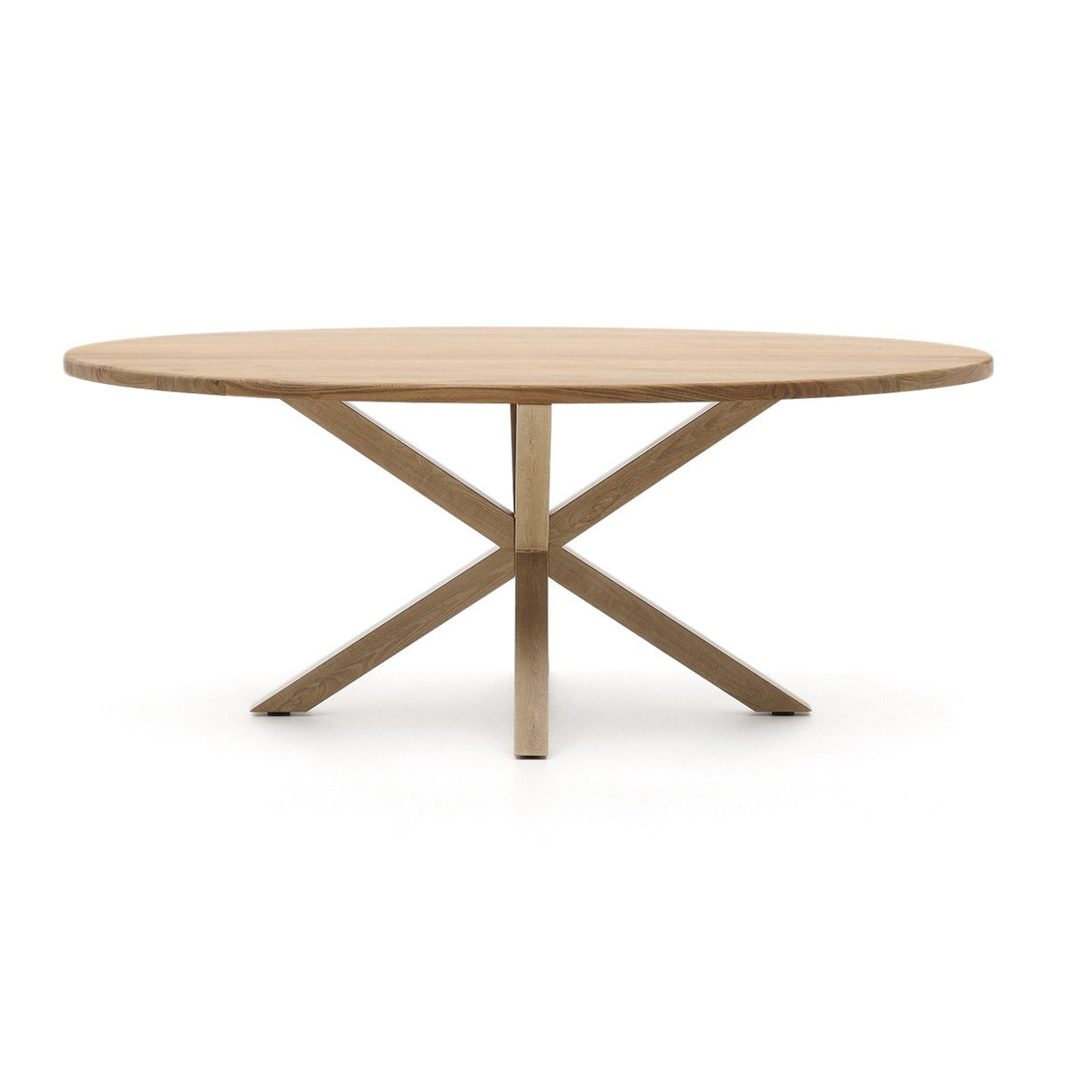 The Arya Oval Table features a solid acacia wood top and steel legs finished in a timeless white colourway. The individuality of Arya stands out in its unique base, a criss-crossed-legged structure that provides visual interest and stability. This contemporary piece will effortlessly elevate any dining space and be a timeless addition to your home.