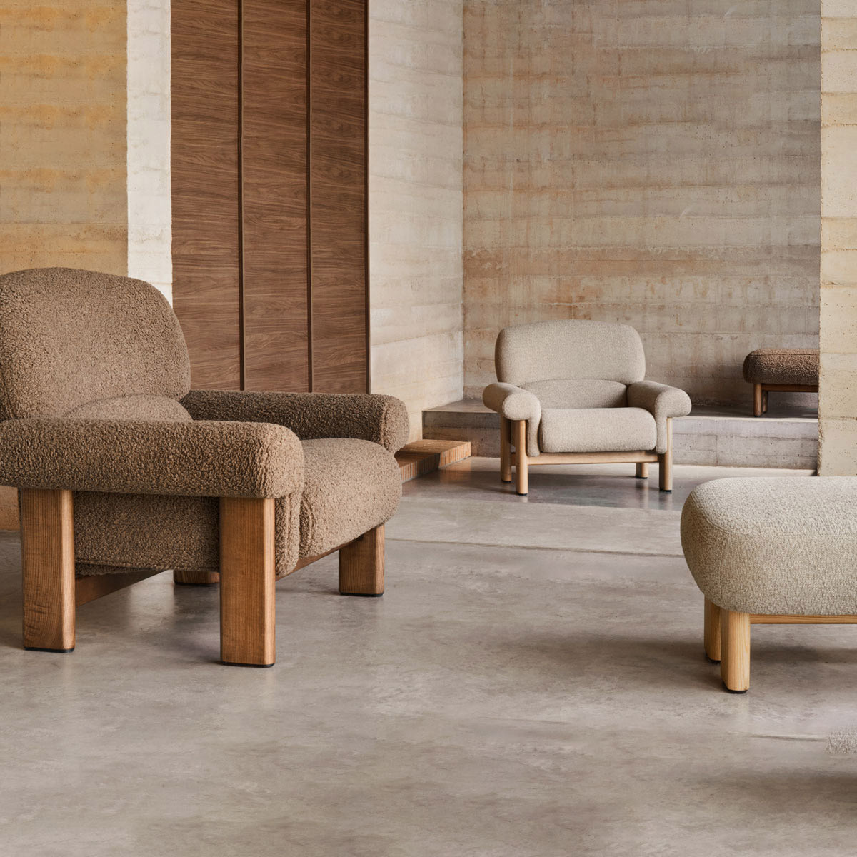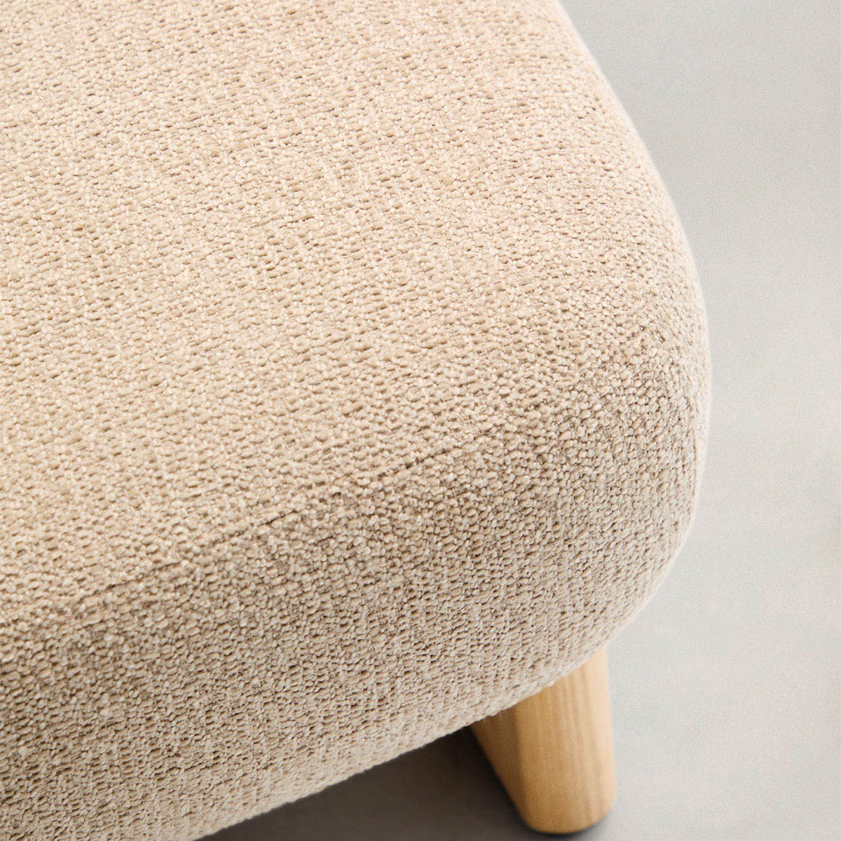 The Cabana Footrest brings warmth and comfort to any space with its plush boucle upholstery and sturdy wooden legs. Designed for both style and function, its compact form makes it a versatile addition to living rooms, bedrooms, or cozy corners. The soft, textured fabric enhances relaxation, while the solid wood base provides lasting durability. Whether paired with a lounge chair or used as extra seating, this footrest blends effortlessly into modern and inviting interiors.