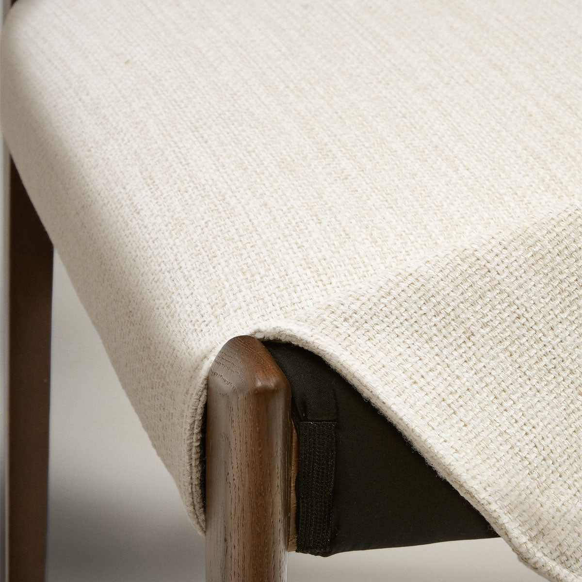 The Cudia Dining Chair is a refined balance of form and function. Crafted from solid oak, its sculpted frame features a curved, slatted backrest that enhances both comfort and style. The upholstered seat, wrapped in soft neutral fabric, offers a plush seating experience while seamlessly complementing the natural wood grain. Subtle detailing, such as the smooth edges and rounded legs, brings a sense of warmth and sophistication, making it a timeless addition to any dining space.