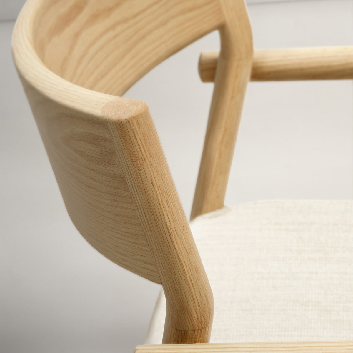 Crafted with a sculptural silhouette, the Falconera Dining Chair combines organic curves with refined craftsmanship. Its solid wood frame, finished in a natural tone, highlights the beauty of the grain, while the gently curved backrest and armrests offer both comfort and support. A plush upholstered seat in a neutral fabric adds warmth and texture, making it a timeless addition to any dining space. Designed for both style and everyday ease, this chair embodies understated elegance.