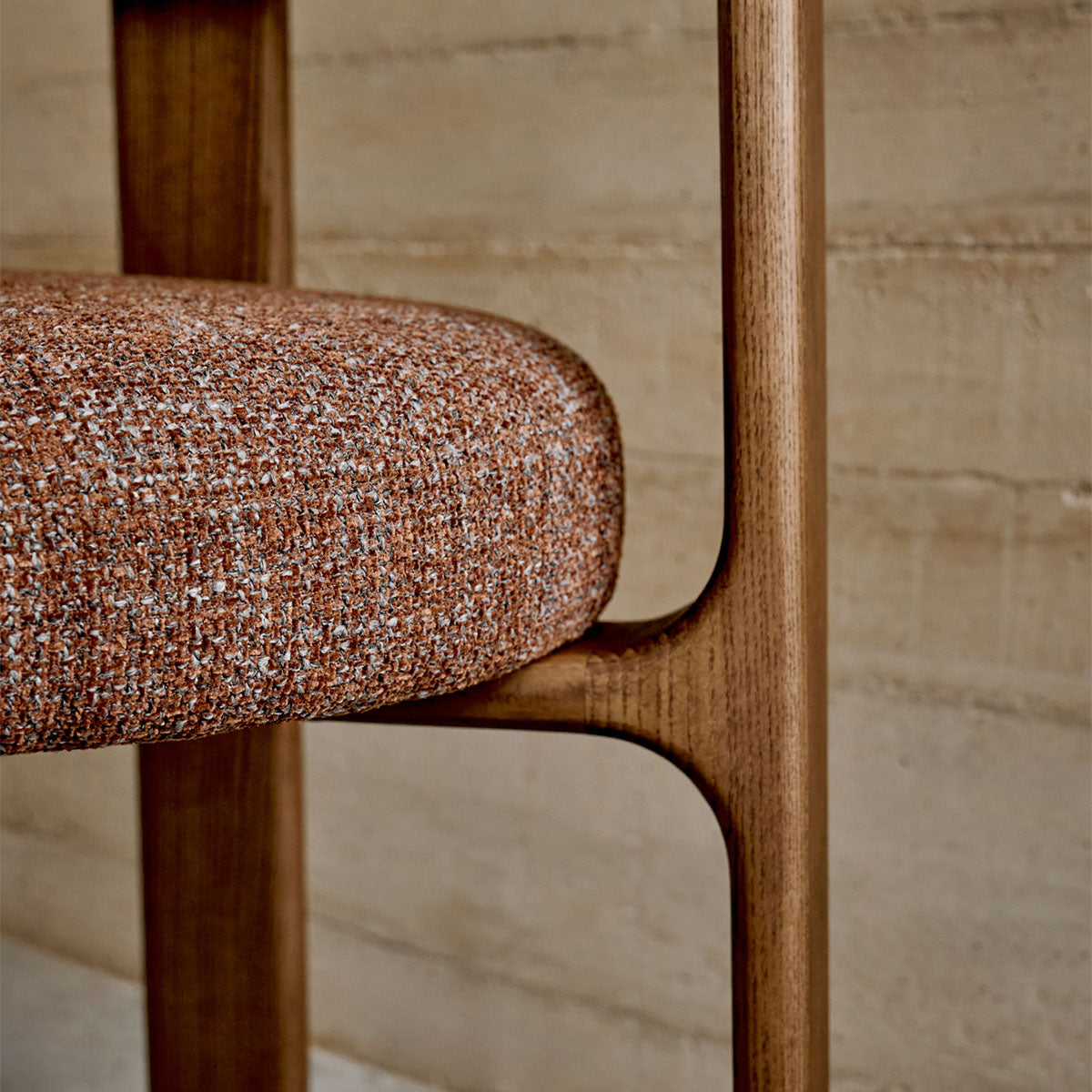 The Granite Dining Chair combines sculptural form with everyday functionality. Featuring a curved, cushioned backrest and a rounded seat, it provides both comfort and support. The solid timber frame adds warmth and durability, while the soft upholstered finish enhances its inviting appeal. Its refined silhouette makes it a standout piece, ideal for contemporary or classic interiors. Whether placed around a dining table or used as an occasional chair, the Granite Dining Chair brings effortless sophistication to any setting.