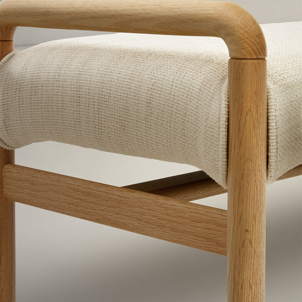 Crafted with a solid oak frame and a softly upholstered seat, the Macaret Bench blends comfort with minimalist elegance. Its curved edges and subtly tapered legs bring warmth and refinement, making it a versatile addition to entryways, bedrooms, or dining spaces. The fabric enhances its timeless appeal, while the sturdy construction ensures lasting durability. Designed for both style and function, this bench offers a sophisticated seating solution for modern interiors.