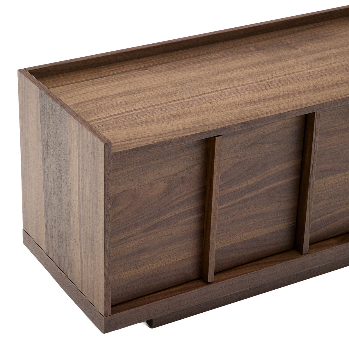 The Onix TV Stand brings refined simplicity to your living space. Crafted from rich walnut veneer, its structured silhouette and vertical panel detailing create a striking visual effect. A recessed top surface adds dimension, while the generous storage behind soft-close doors keeps entertainment essentials neatly tucked away. Designed for both function and style, this piece anchors your space with warmth and sophistication. A seamless blend of modern lines and timeless craftsmanship for any interior.