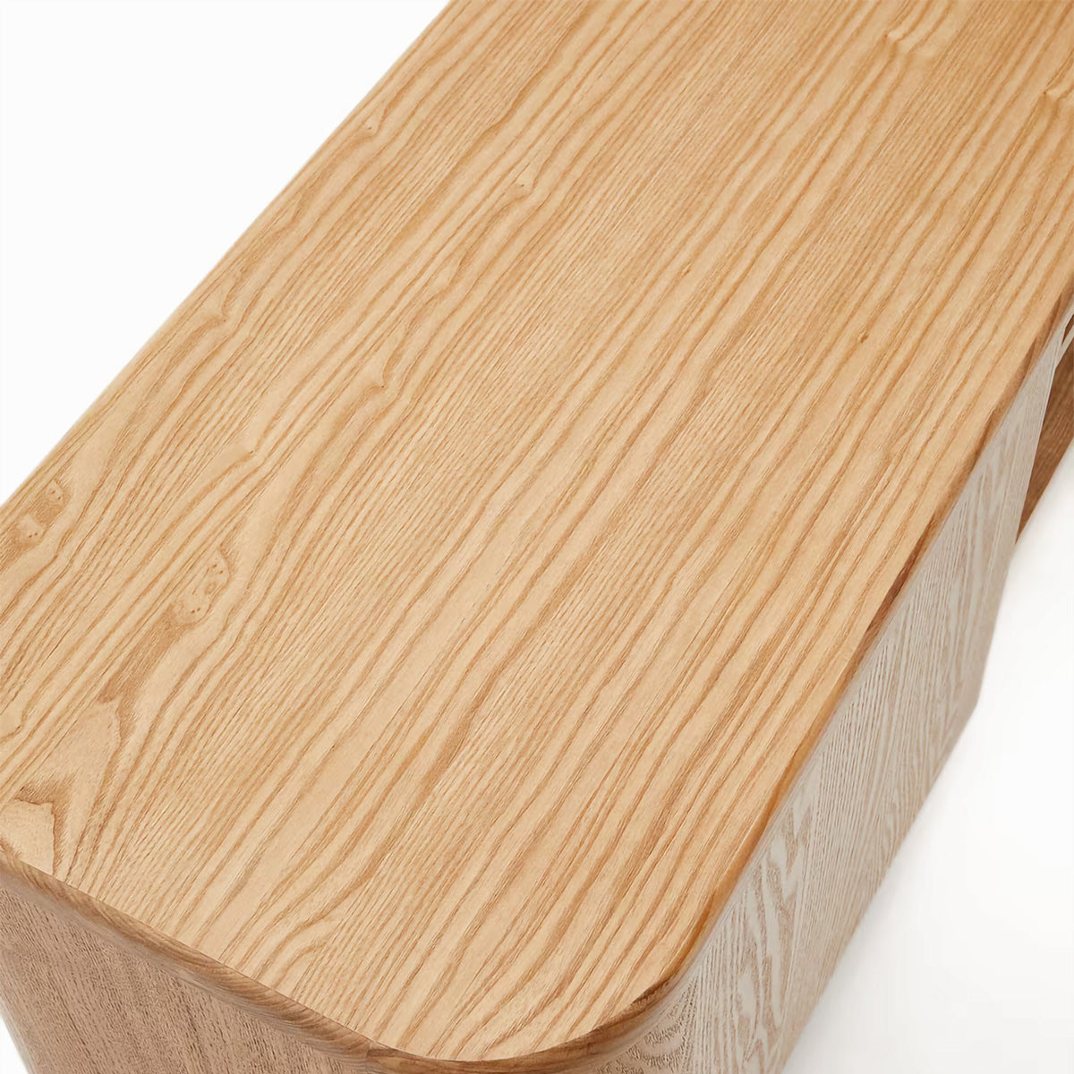 The Salaya TV Cabinet is made from ash plywood with legs of solid ash wood. With four soft-close doors, it features a removable shelf behind the two middle doors, so the space can be configured to meet your needs. It has adjustable feet so it can be levelled on an uneven floor, and a hole for passing through cables. The Salaya collection combines the purity of straight lines with the dynamism of the curved shapes of its side panels.