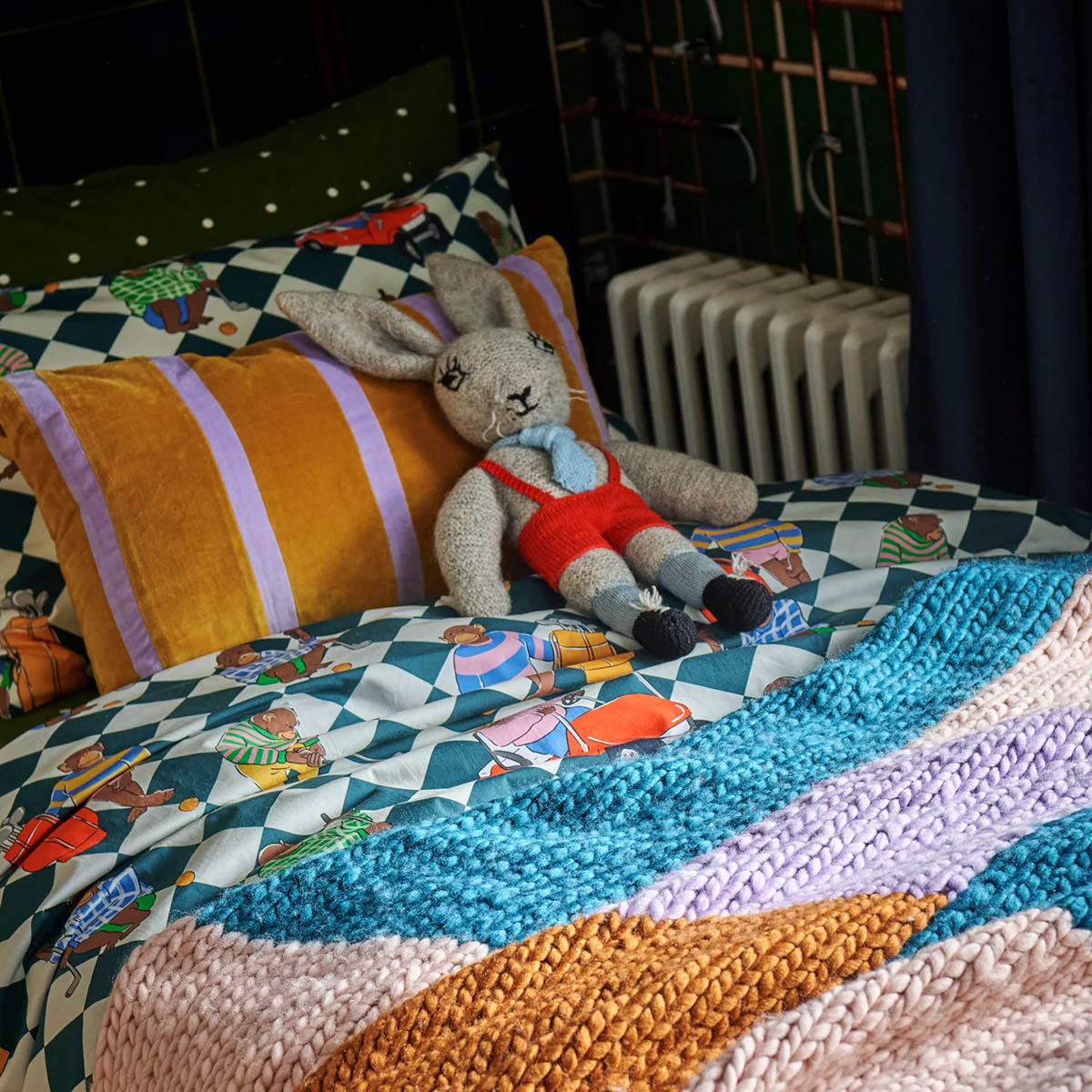 Cushions are the ultimate cosy companions for styling your home into the perfect haven of warmth and comfort! With a mix of textures, patterns, and colours, our collection of cushions add layers of charm and personality to every corner of your space. Embrace the art of layering and transform your living space into a plush paradise. The Pecan Pie Stripe Velvet Rectangle Cushion is made from our signature soft 100% cotton velvet, with panelled stripes of golden pecan brown and pastel purple. Pair up with a blanket of choice and get cuddly for the winter ahead.