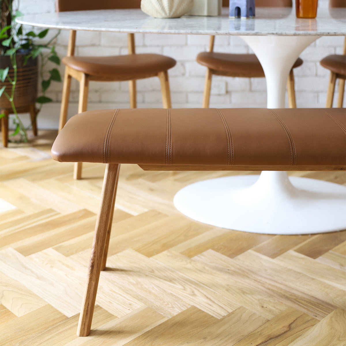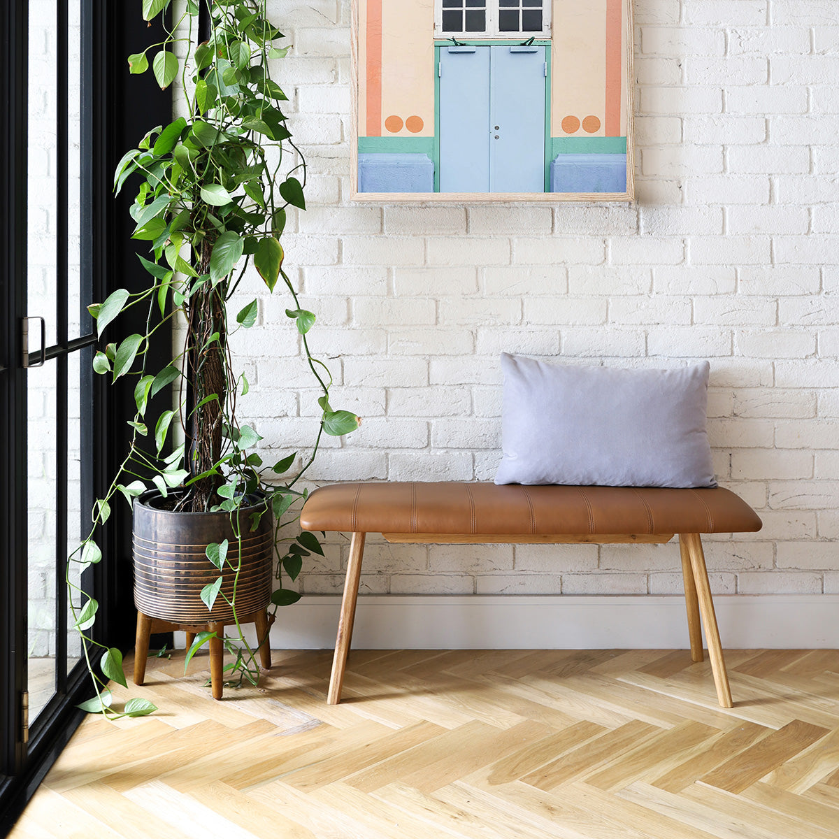 The Alaska Leather Bench is all about smooth and considered details. Featuring a simple, yet stylish design, this bench features a solid oak frame that is beautifully complemented by its soft leather upholstered seat. Ideal to elevate any entryway, hallway, living space, or bedroom, the Alaska is versatile to complement any interior style within your home.