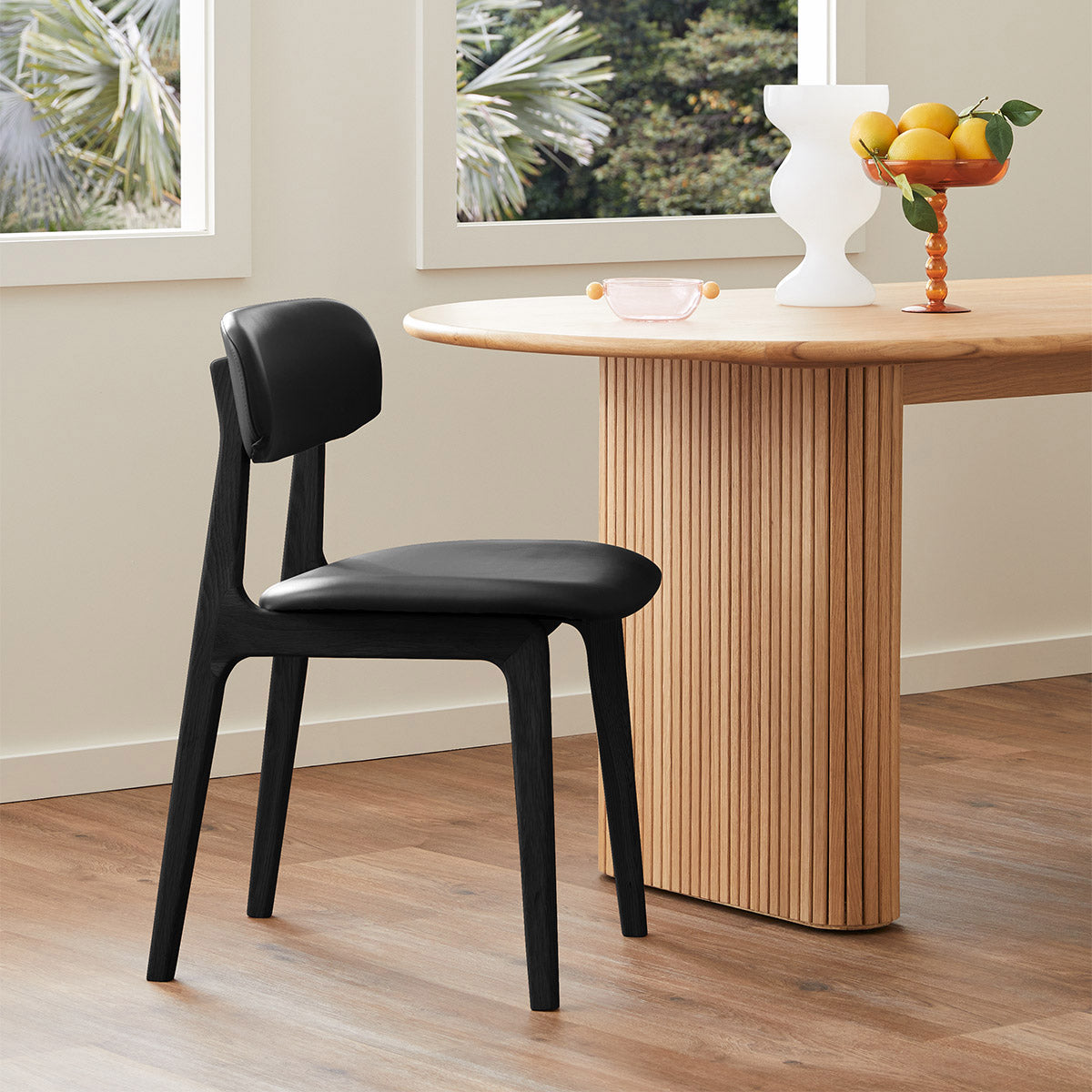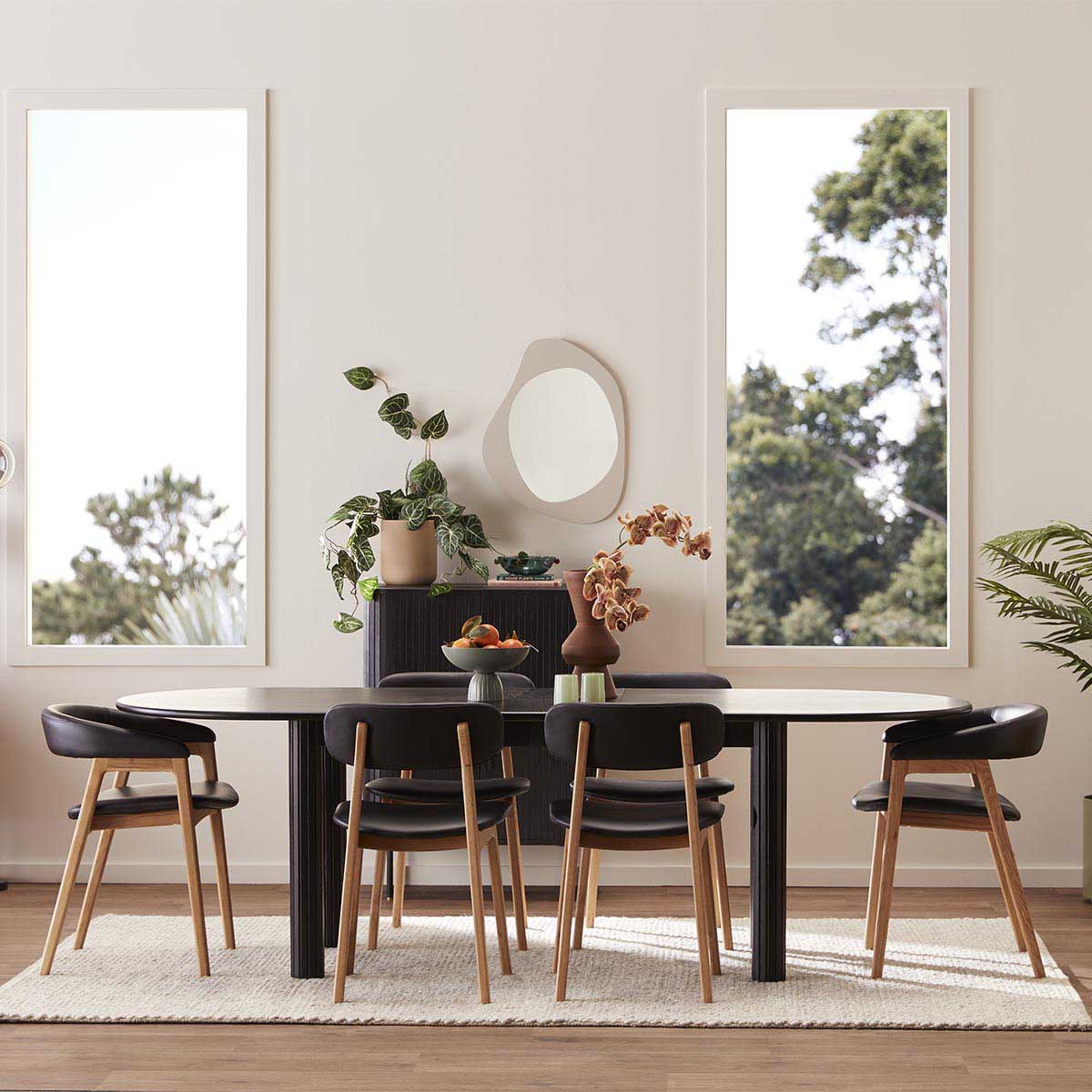 The Alaska Leather Dining Chair is a contemporary seating solution that blends style and functionality to elevate your home. Expertly crafted from high-quality solid timber, this chair boasts a robust frame designed to endure everyday use. The seat and backrest are adorned with stylish leather fabric available in various timeless colourways, offering a comfortable sitting experience while adding a touch of elegance to any space. With its sleek lines and minimalist design, the Alaska effortlessly complements modern interiors and is a must-have in any dining space.