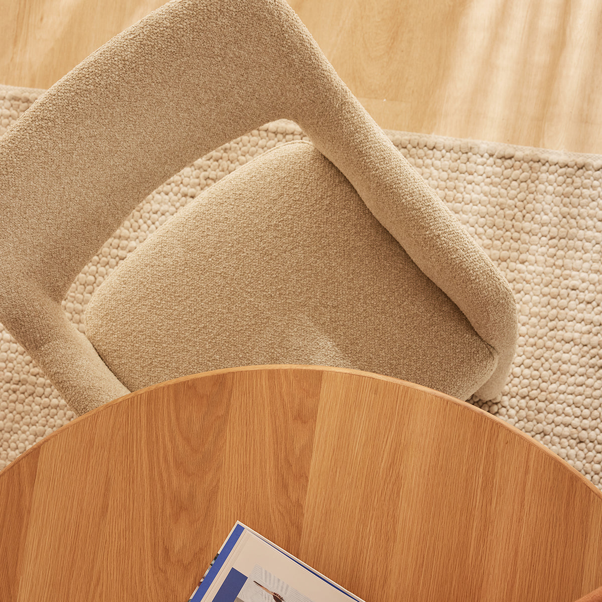 Indulge in the tactile luxury of the Amelia Dining Arm Chair. Wrapped in a sumptuous, textural boucle fabric, this chair will bring comfort and elegance into your dining space. Its distinctive, curvilinear form ensures a seamless blend of support and style, while the neutral palette allows for versatile styling. The sturdy form and timeless design ensure that it lasts your space for years, making it a perfect staple for any contemporary dining setting.