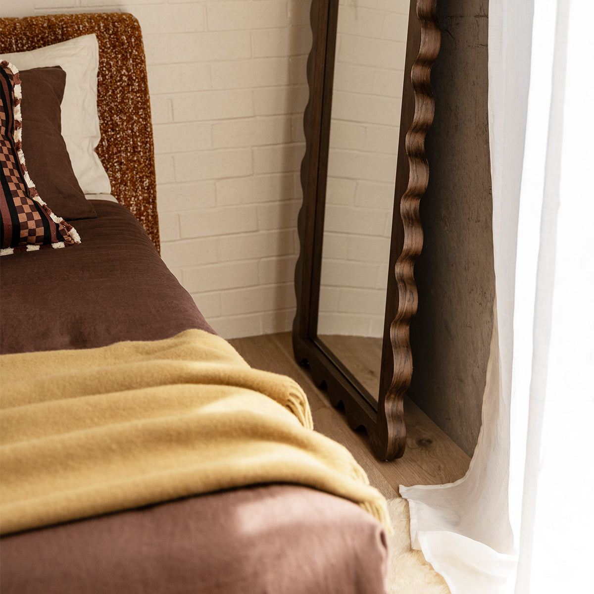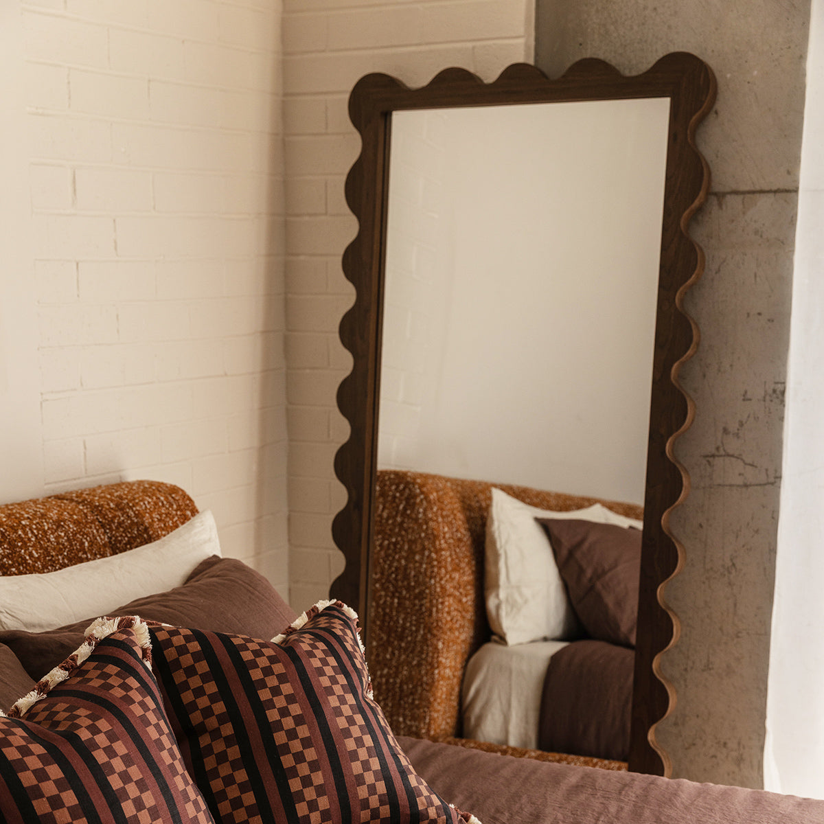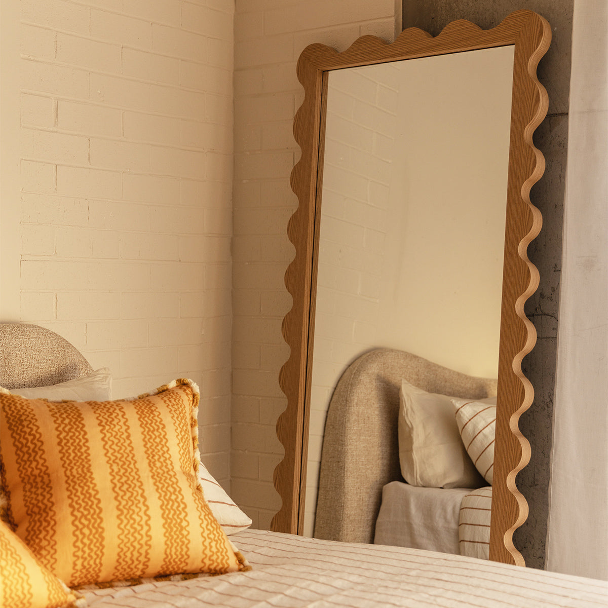 Enhance your decor with the Amelia Floor Mirror, featuring a charming wavy American Oak frame in a natural oak finish. This mirrors unique design adds a touch of contemporary flair to any room, creating a striking focal point. Perfect for living rooms, bedrooms, or entryways, it amplifies light and enhances the perception of space. The Amelia Floor Mirror combines functionality with artistic elegance, seamlessly integrating into various interior styles. Elevate your home with this stylish and versatile mirror, designed to reflect your sophisticated taste.