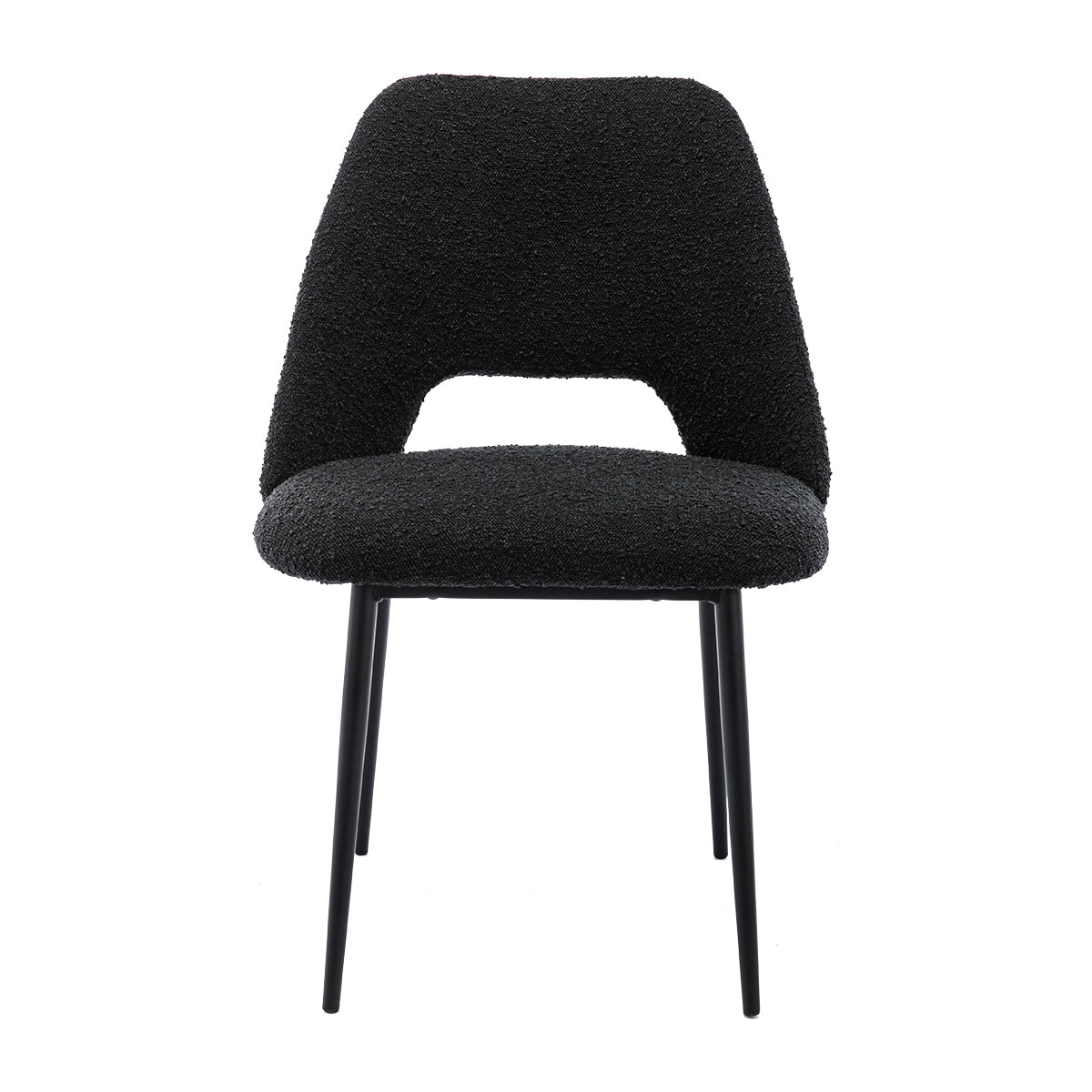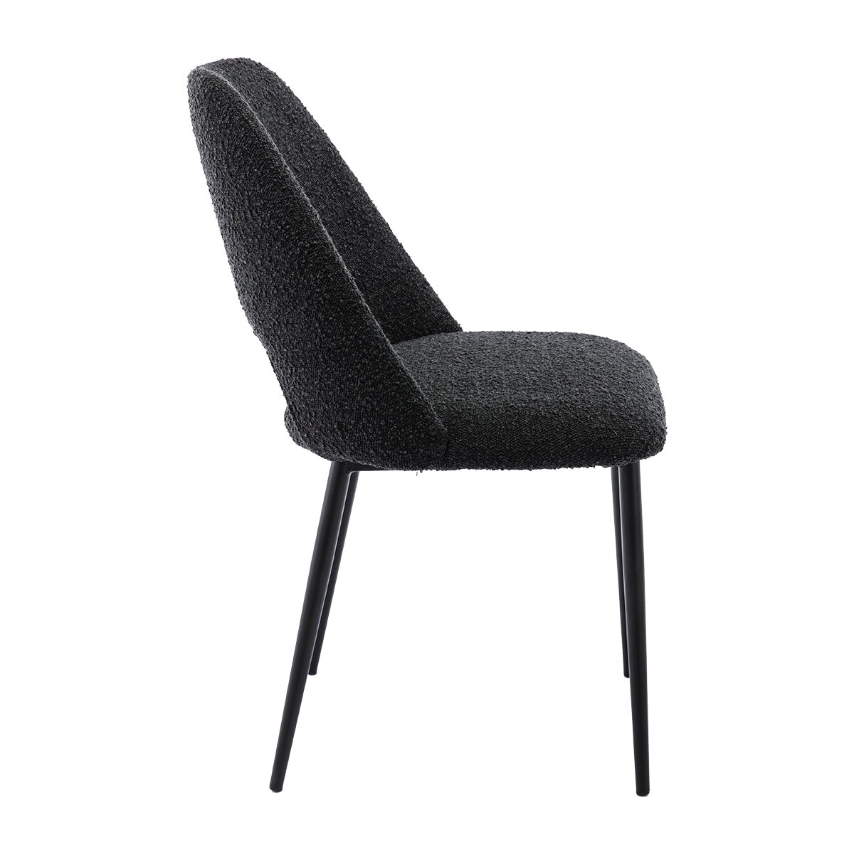 With incredible contemporary charm, the Belmont Boucle Dining Chair is a simple chair that boasts a tactile design with a gracefully curved backrest. The sleek powder-coated steel legs add a sophisticated touch, whilst the padded seat and backrest offers luxurious comfort during meals and long conversations around the table. The timeless hues of this dining chair effortlessly blend with various decor styles and colour schemes, making it a versatile and stylish addition to any dining space.