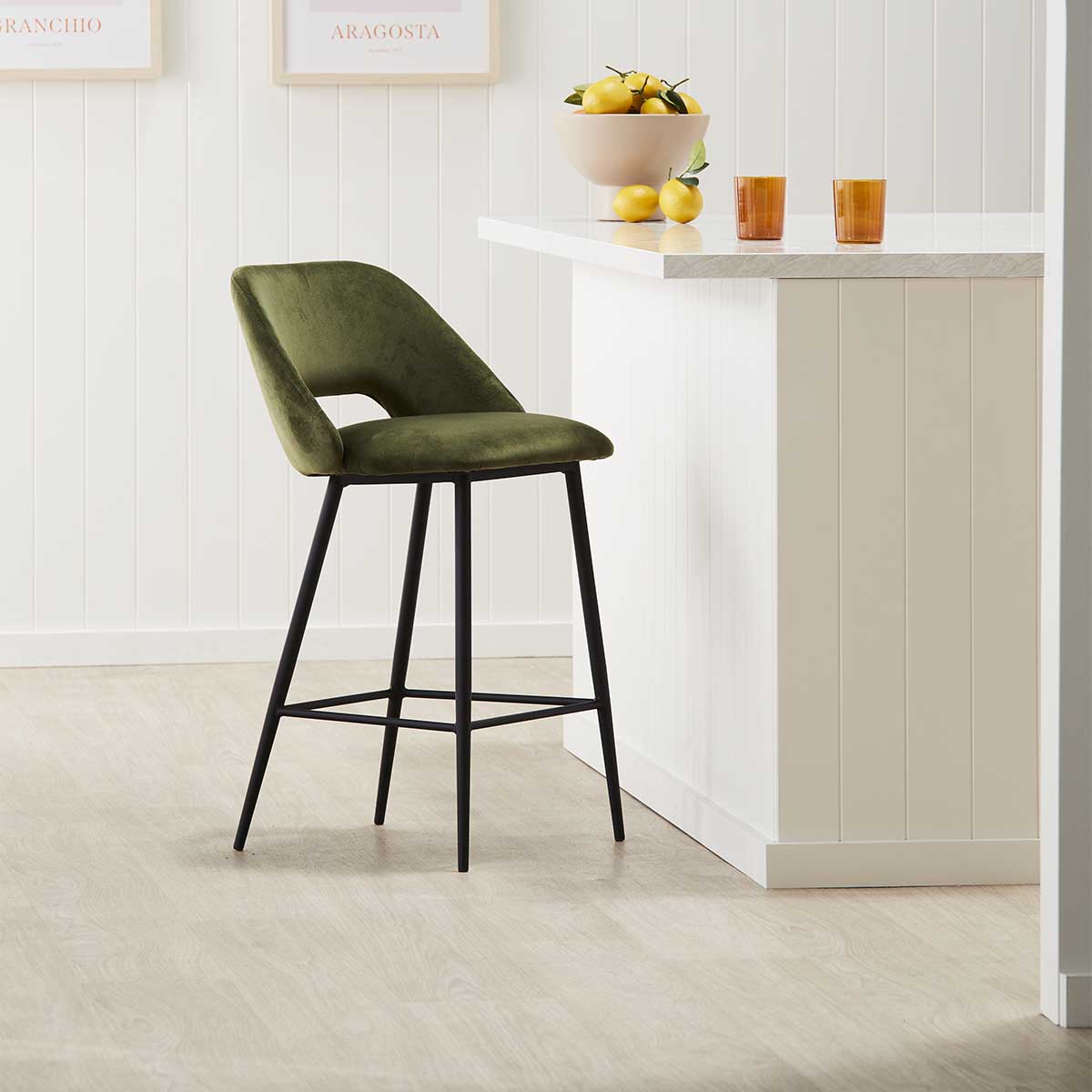 Embrace timeless elegance with the Belmont Velvet Bar Stool, featuring a modern form detailed with a subtle hints of mid-century design. Its solid steel frame ensures it remains durable for daily use, while the curved backrest showcases a visually striking cut-out feature. The luxurious velvet upholstery of the seat and backrest offers a soft and cosy element, with the added luxury of foam padding to maximise your comfort levels whilst seated. Available in a range of colourways and finishes, the Belmont will effortlessly complement the existing interiors of any kitchen or bar area.