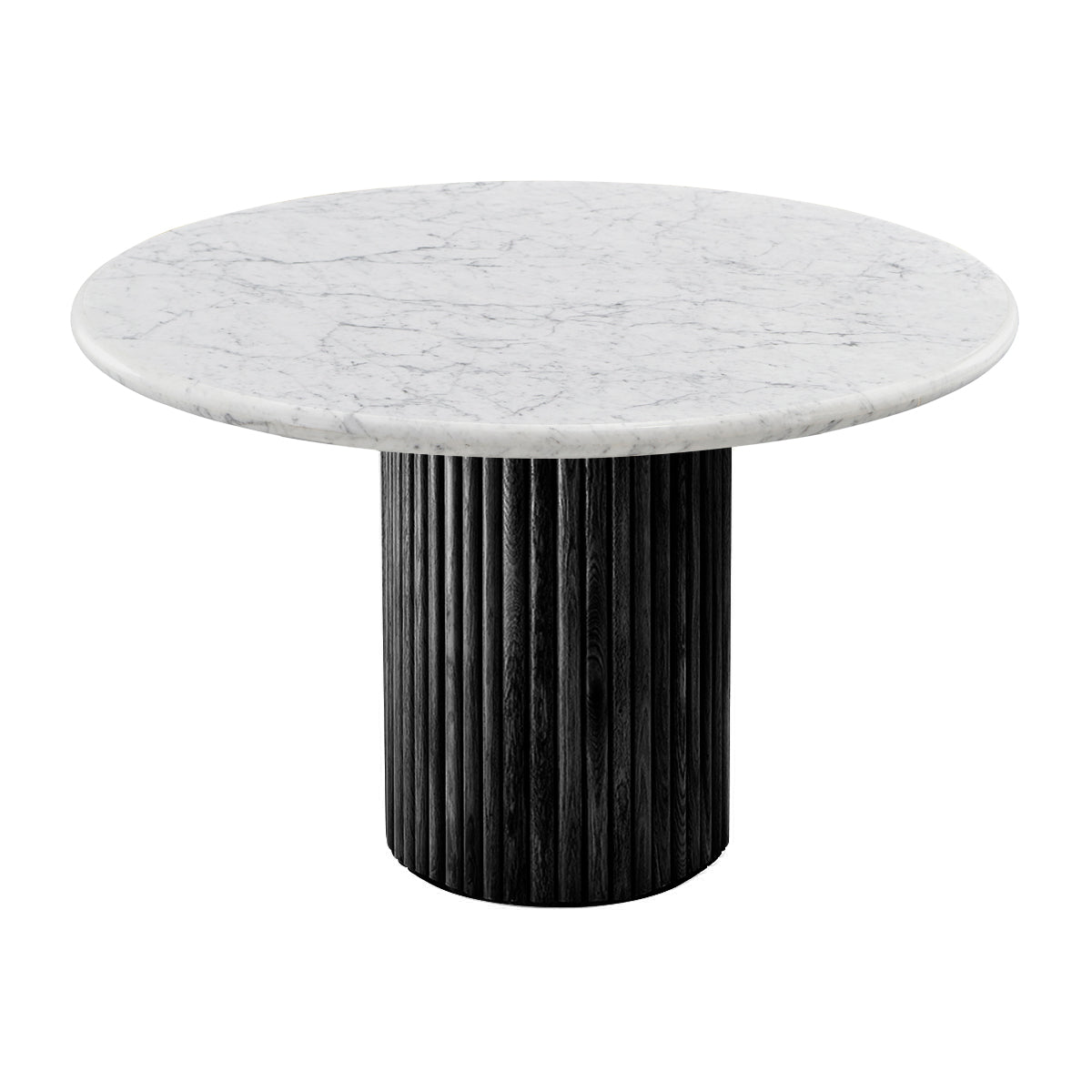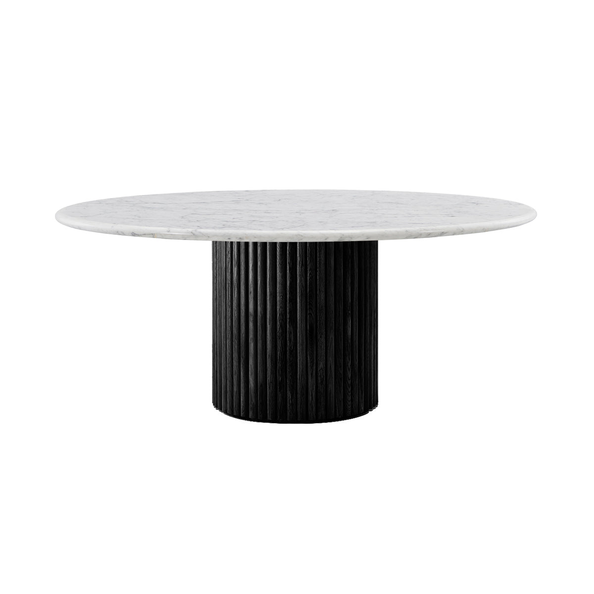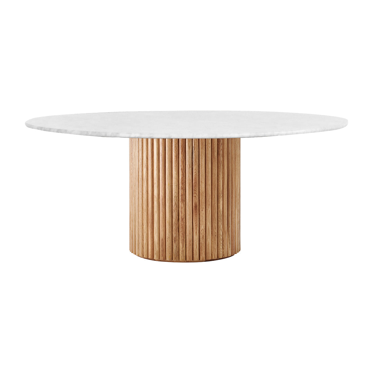 The Cosmos Dining Table is a timeless and contemporary statement for your dining space, with a circular Italian carrara marble top and American Oak timber clad column base. Available in multiple timber finishes, browse the collection for side table, dining table and console table options.
