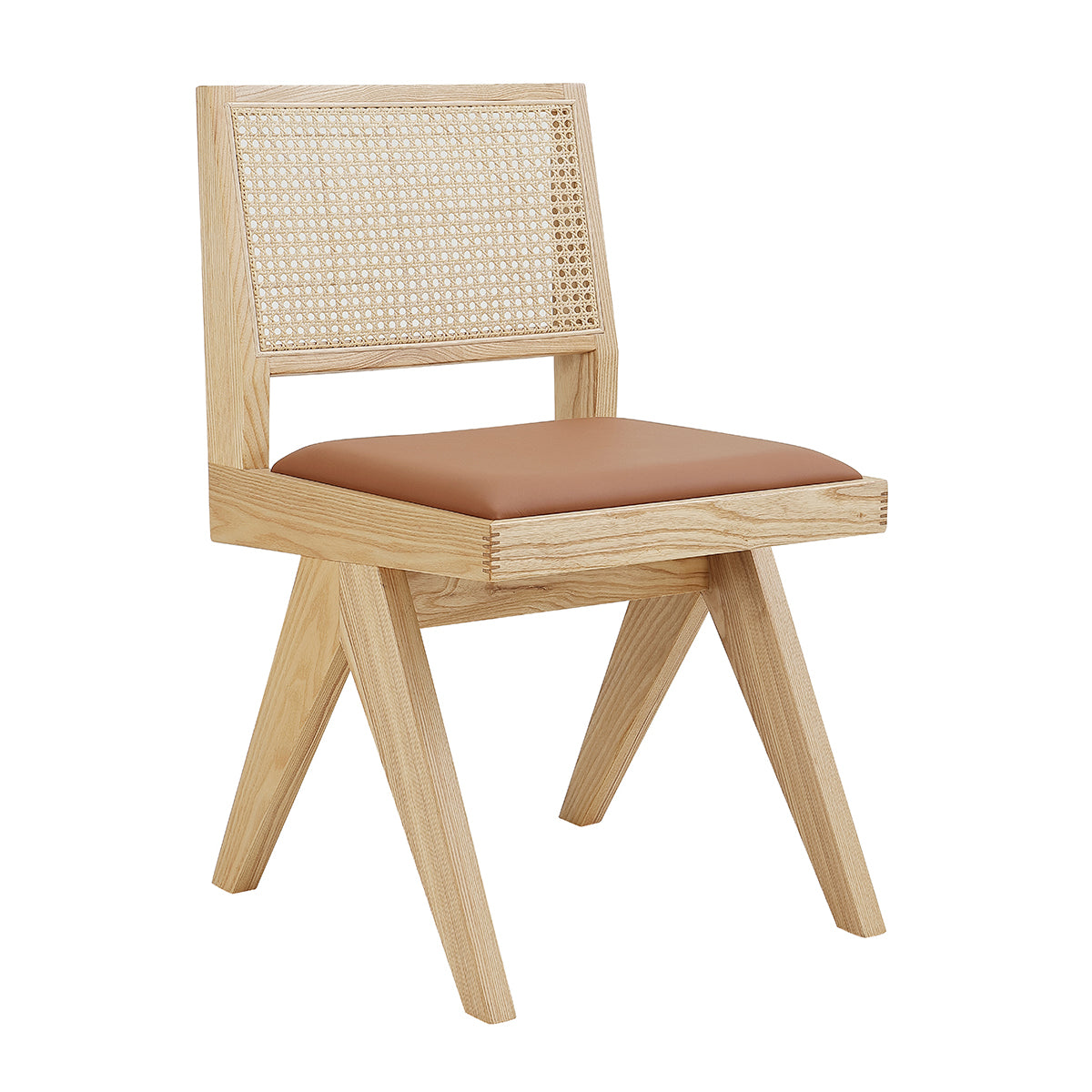 The Cuba Dining Chair is a contemporary classic with an angular form. Crafted from ash timber, it features gently tapered legs and a natural rattan backrest that brings an element of warmth and texture to its design. The leather upholstered seat enhances its visual interest and comfort, making it the perfect piece to accompany long dinners and relaxed entertaining.