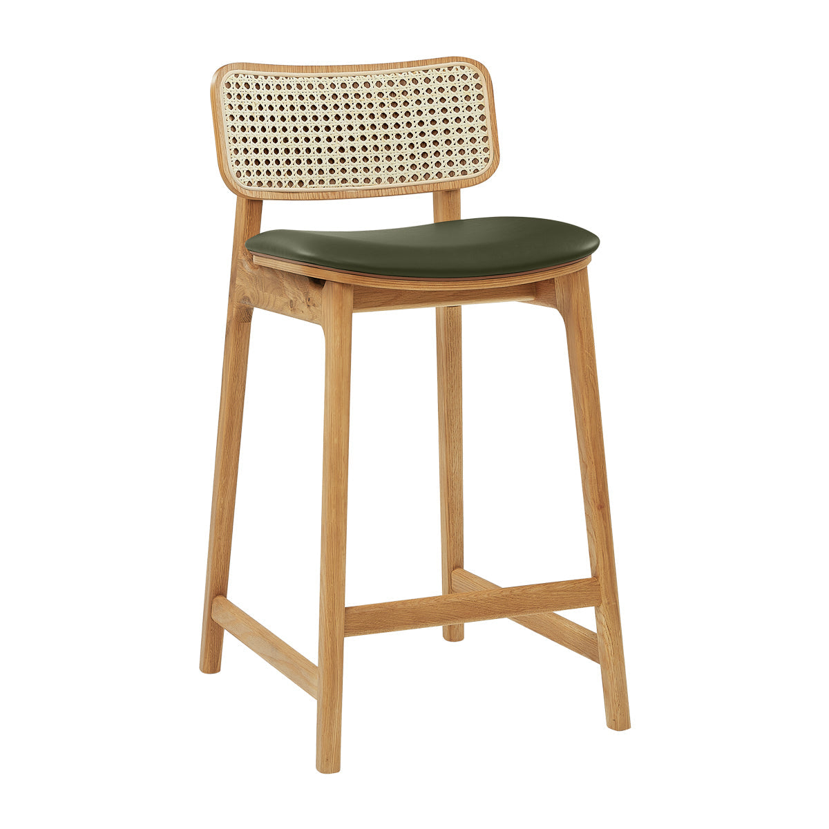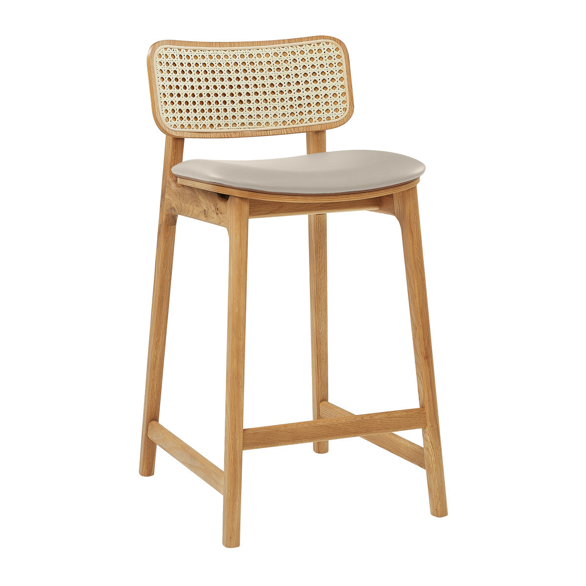 The Flair Rattan Leather Bar Stool features the classic combination of rattan and oak, elevated by the sleek addition of leather to its design. The stunning rattan backrest and natural oak frame work cohesively to create its warm natural vibe that will add visual interest to any space. The smooth leather seat complements the natural materials beautifully, bringing an element of sophistication and modern design to its unique blend of textures.