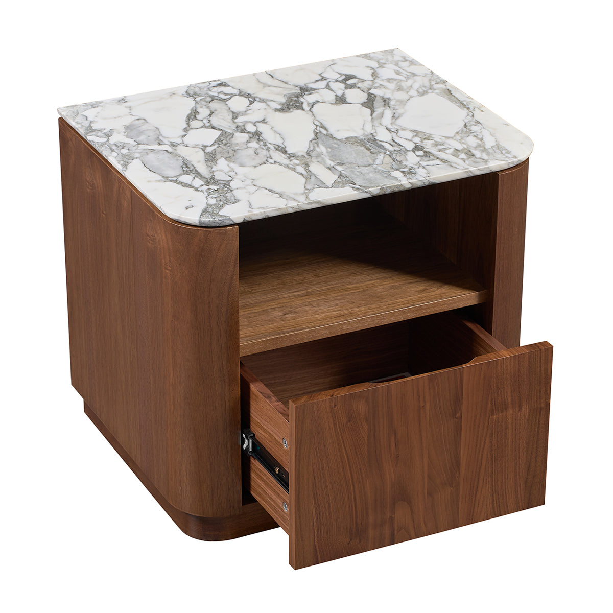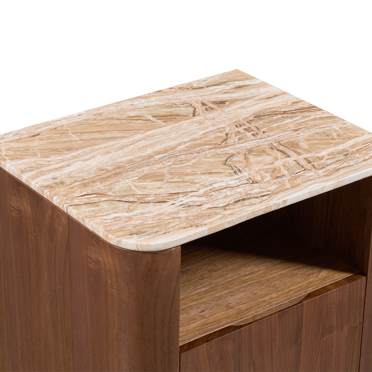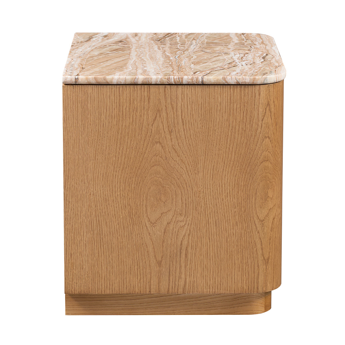 Elegant and enduring, the Florentina Natural Stone Bedside Table celebrates the beauty of natural materials through a refined, contemporary design. The natural stone top showcases soft tonal variations and organic texture, perfectly complemented by a warm oak or walnut veneer base with gently rounded edges