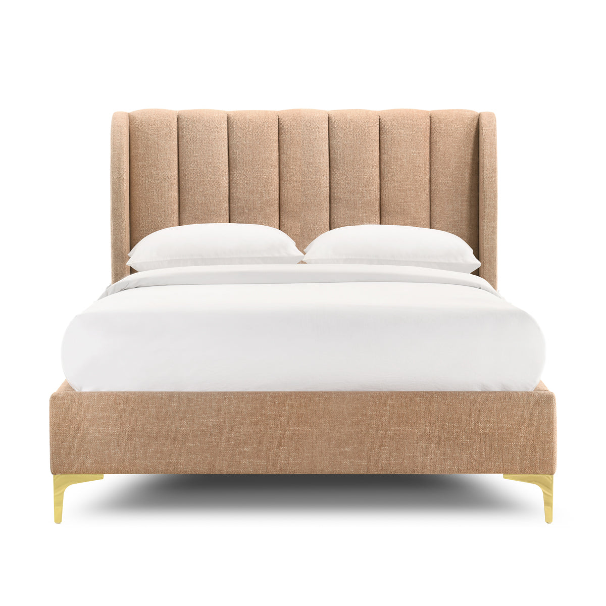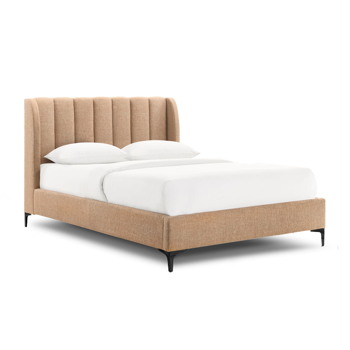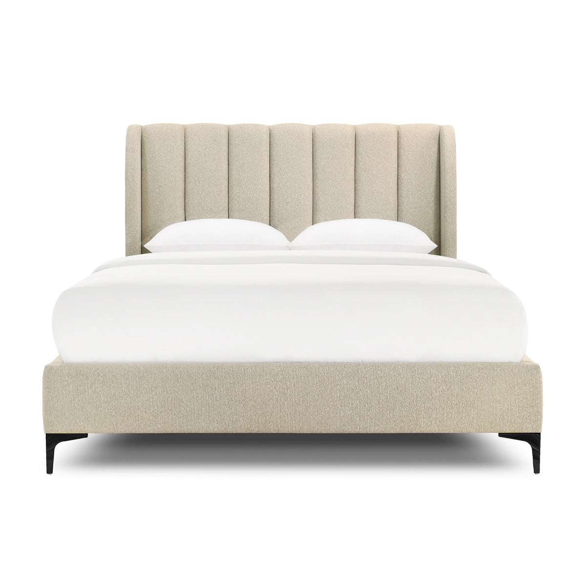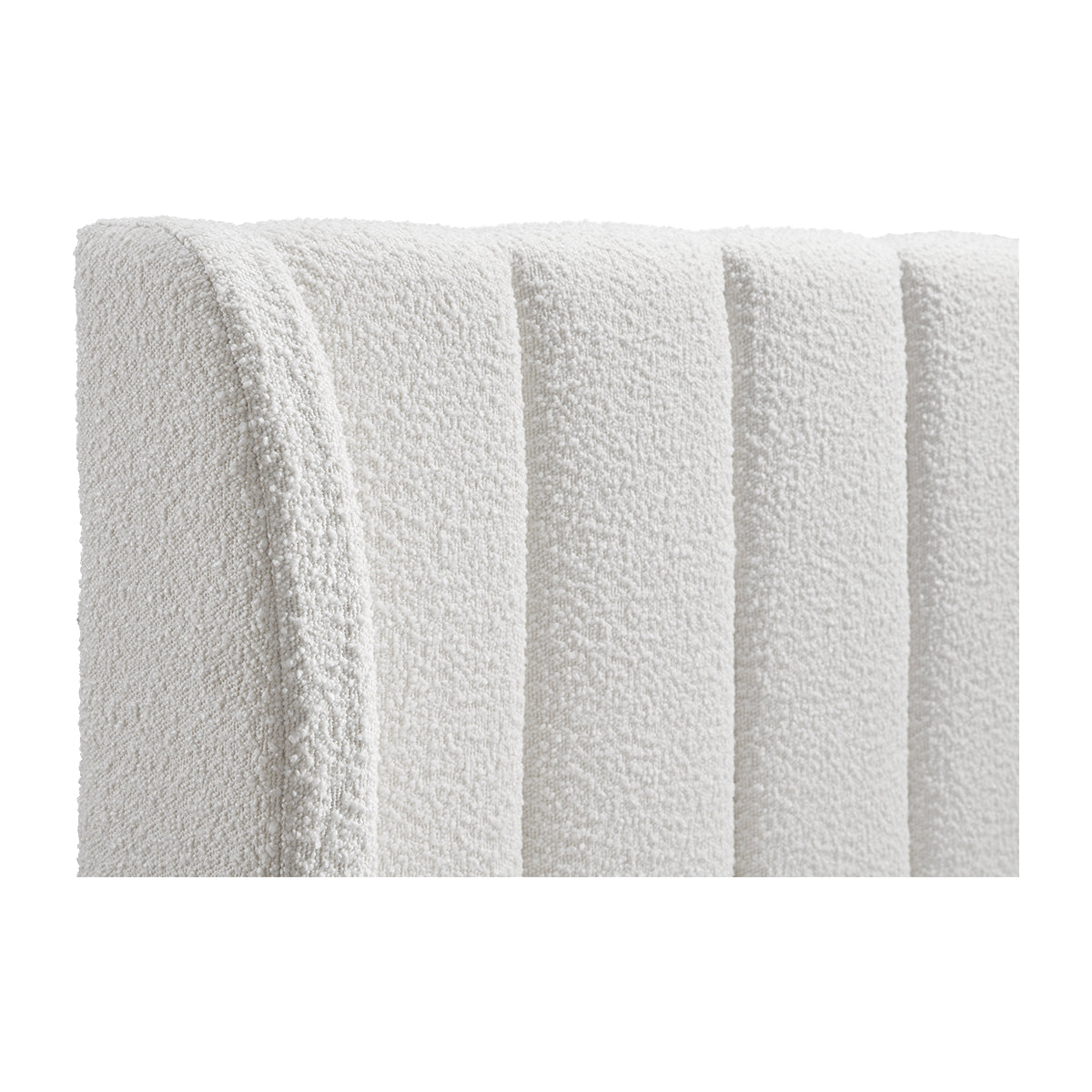 Make a stylish statement with the Georgia Boucle Bed, designed to add elegance to any bedroom. Beautifully upholstered in a tactile, boucle fabric, the Georgia features a stunning wingback bedhead with vertical stitched detailing. With the option to choose between gold or black legs, you can tailor this bed to suit your unique taste and switch it up in time to come if you are feeling inspired! Georgia is perfect for adding contemporary style to your space, offering both comfort and sophistication.