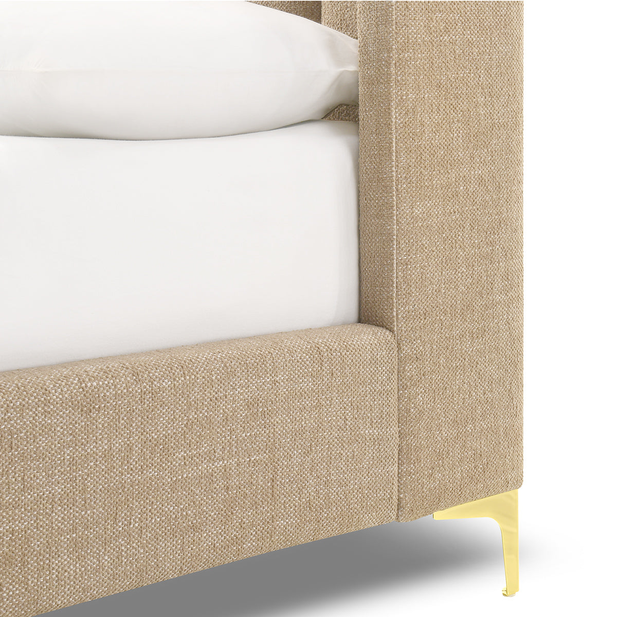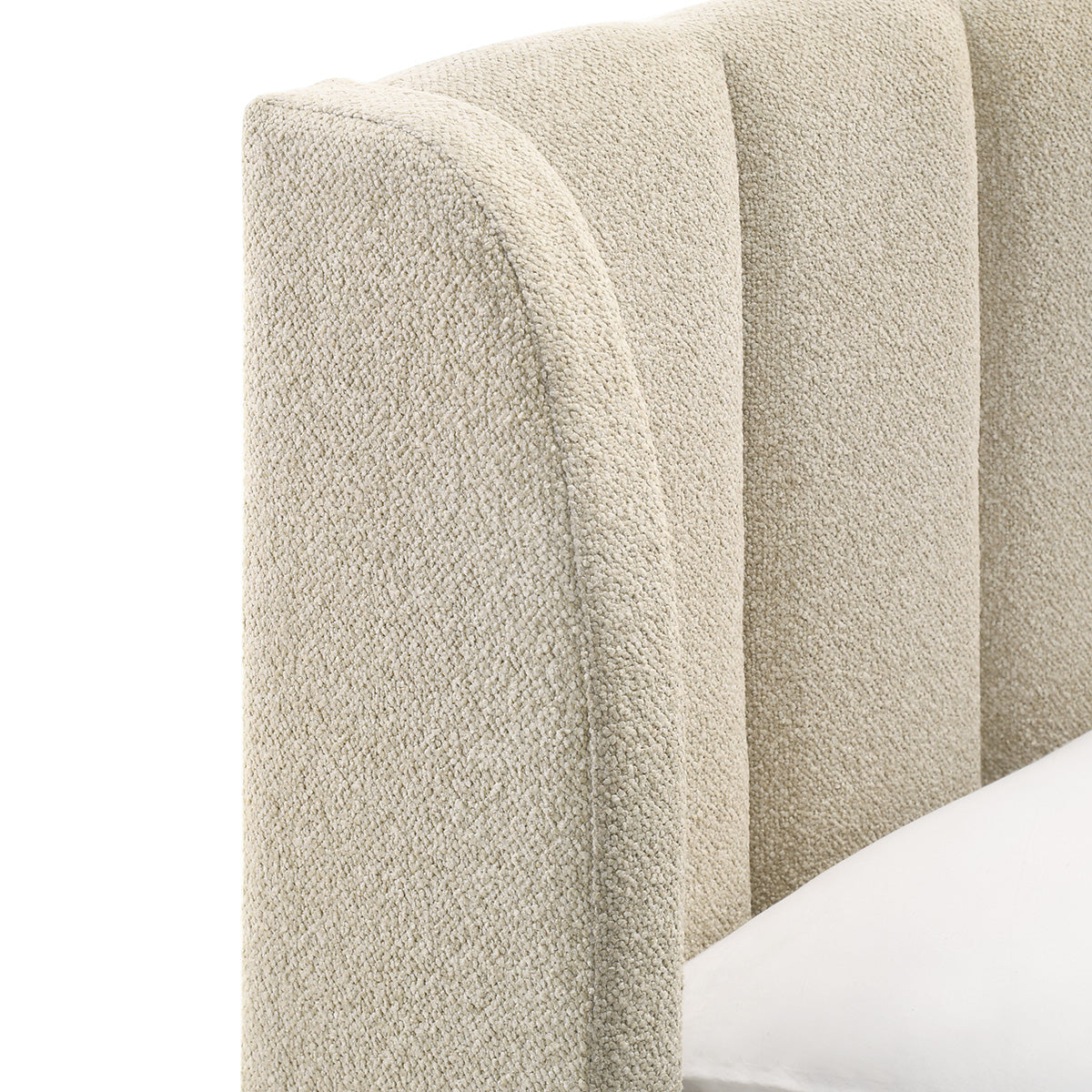 Make a stylish statement with the Georgia Fabric Bed, designed to add elegance to any bedroom. Beautifully upholstered in a tactile, soft fabric, the Georgia features a stunning wingback bedhead with vertical stitched detailing. With the option to choose between gold or black legs, you can tailor this bed to suit your unique taste and switch it up in time to come if you are feeling inspired! Georgia is perfect for adding contemporary style to your space, offering both comfort and sophistication.