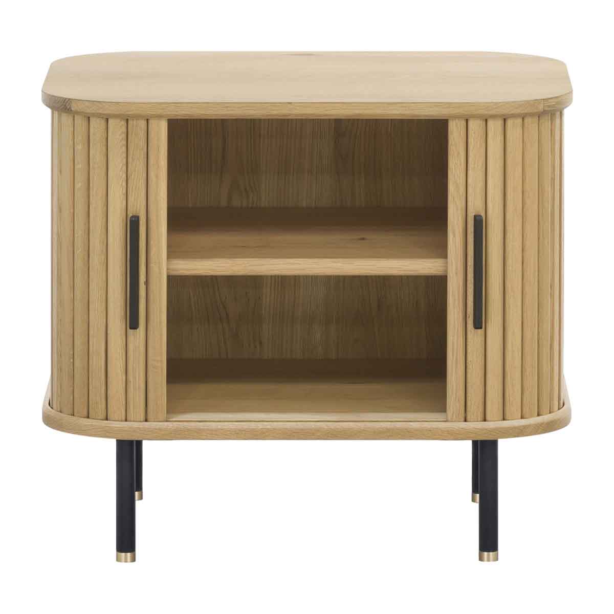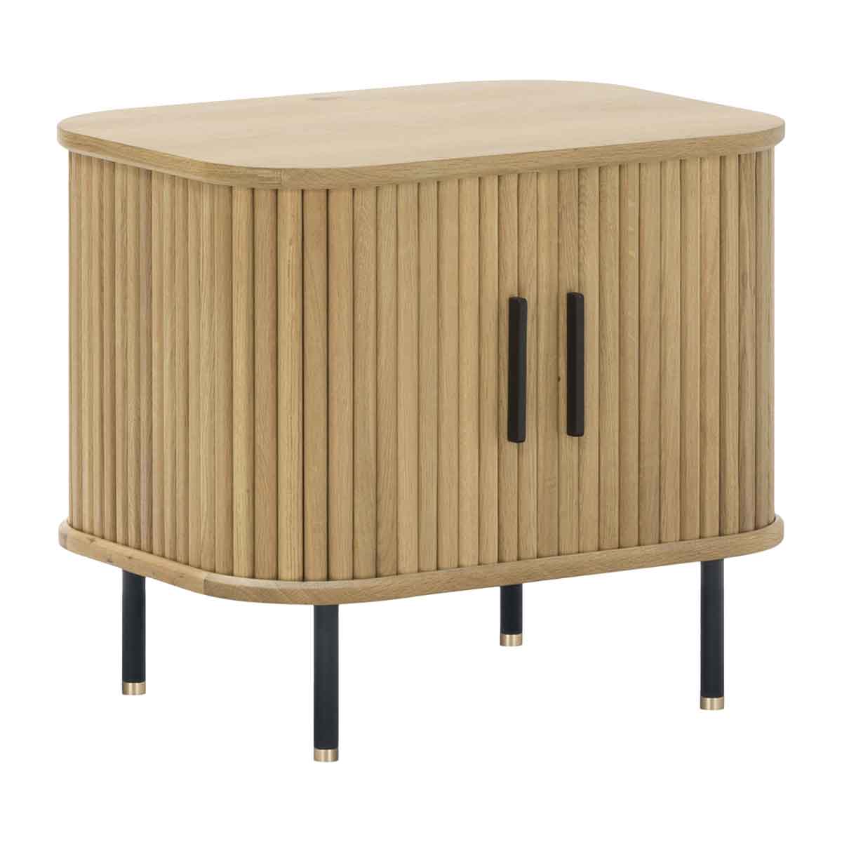 The Ipanema Bedside Table is part of the broader Ipanema collection, a modern, high quality and timeless range of storage solutions. Constructed from solid timber and powder coated metal, its unique design marries Scandi and Japanese design languages to create its incredible Japandi aesthetic. It showcases an eye-catching panelled timber form, finished with curved corners, black accent details, and functional sliding doors. With ample storage space and timeless appeal, the Ipanema will make for a practical, yet stunning design statement in any bedroom.