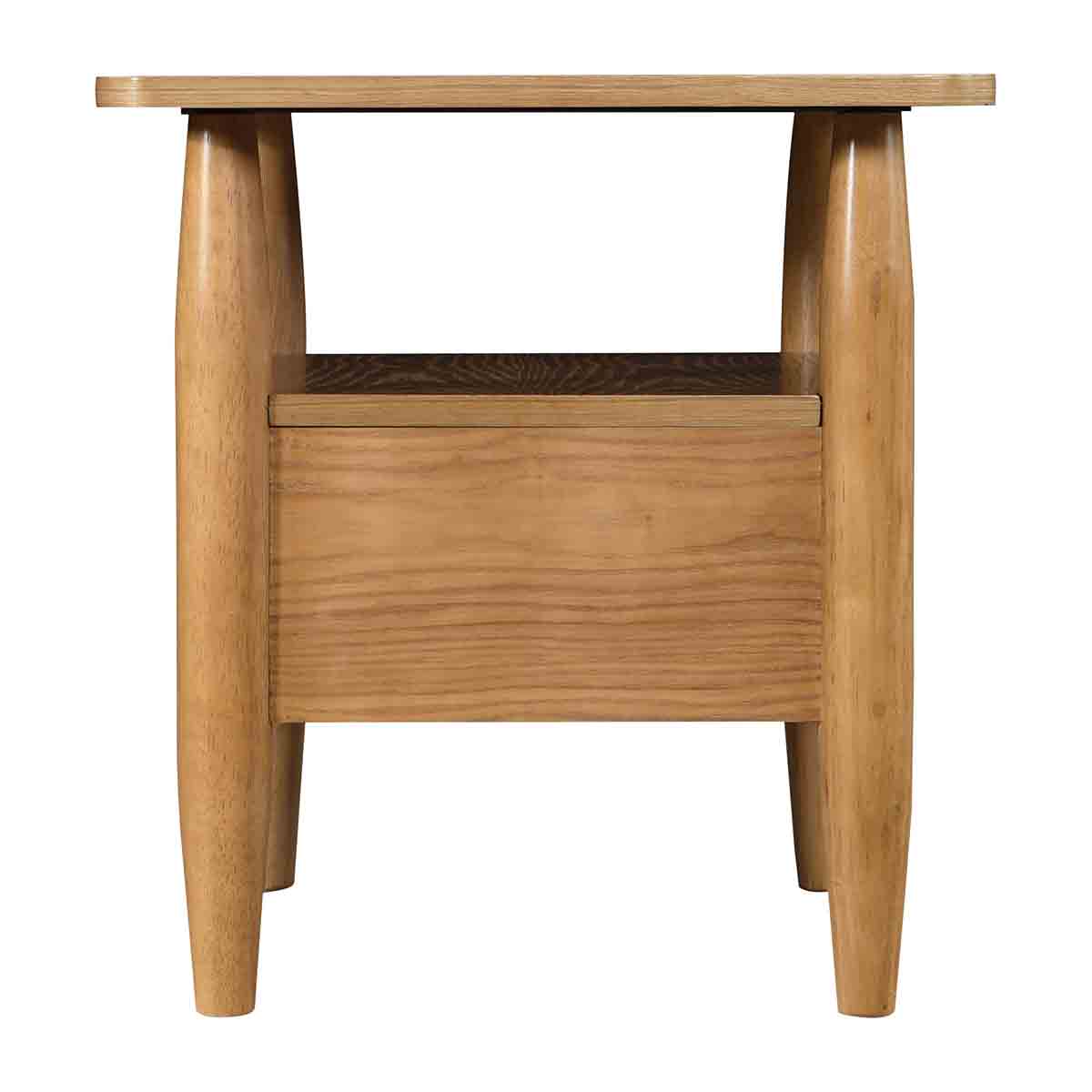 The Kai Bedside Table offers both functionality and style with its stunning considered design. Featuring a spacious drawer and a convenient open shelf, it provides ample storage while adding a touch of elegance to any bedroom. Crafted with attention to detail, its sleek lines and warm wood tones make it a versatile addition to complement all interior styles.