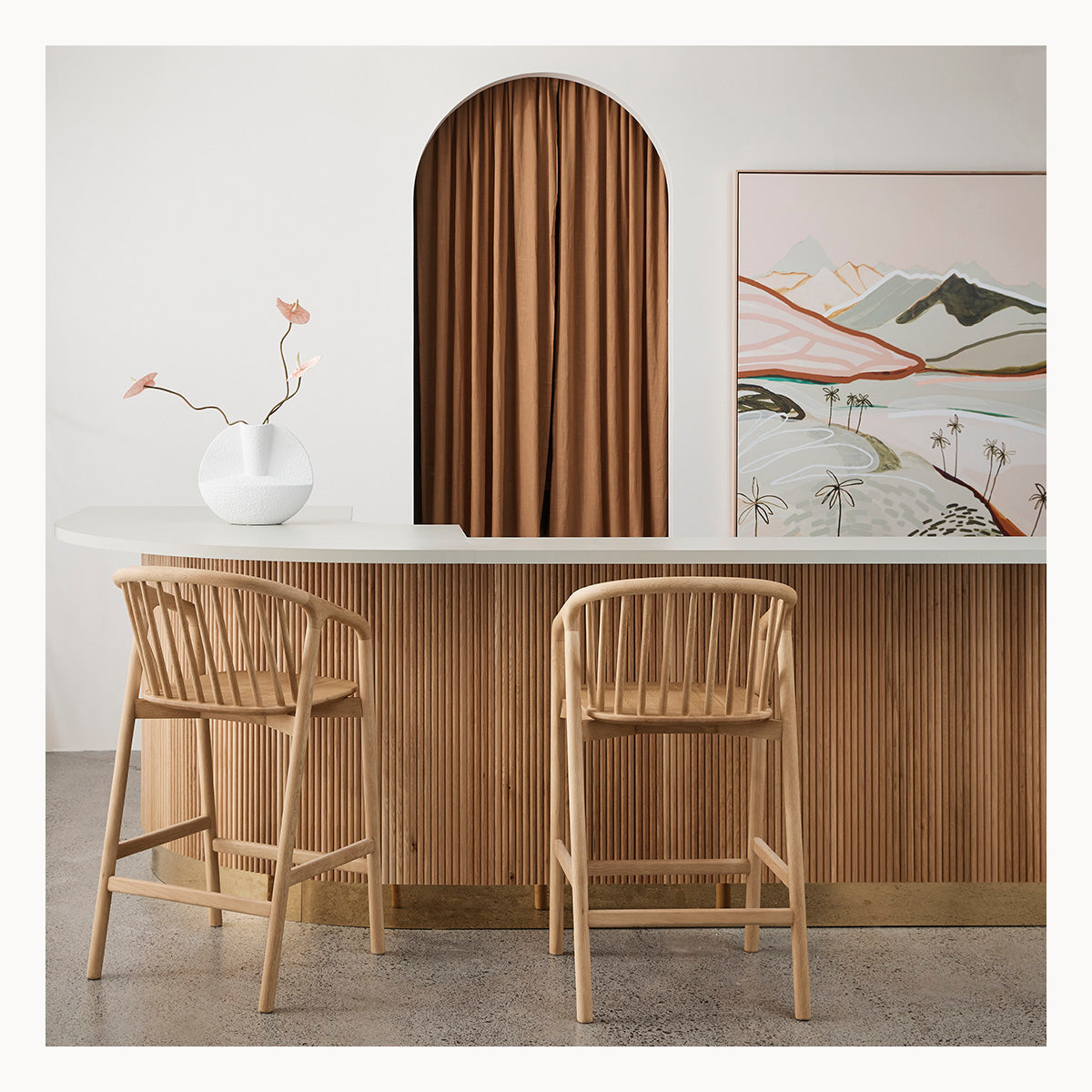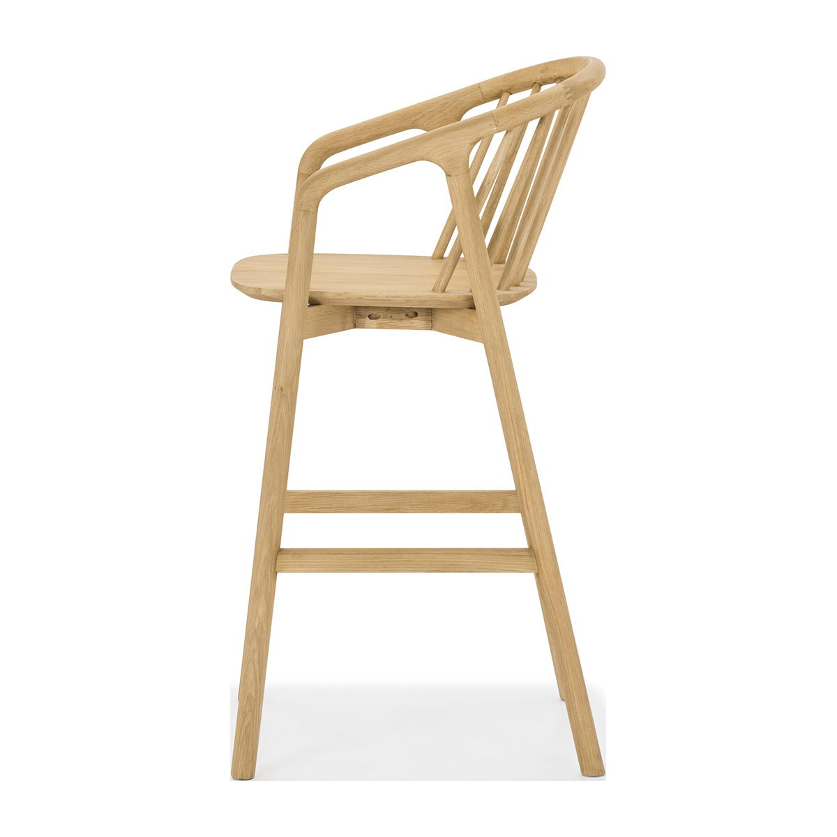 Experience laid-back living with the Lake Timber Bar Stool, featuring an intricate spindle-style backrest that exudes character and visual interest. Crafted from solid oak, this stool boasts exceptional durability, while the natural colouring highlights the beauty of the woods organic grain patterns. The clean lines create an inviting and timeless design, perfect for enhancing any kitchen or bar area. Relax and unwind in style with the added support of the footrest, effortlessly blending form and function.