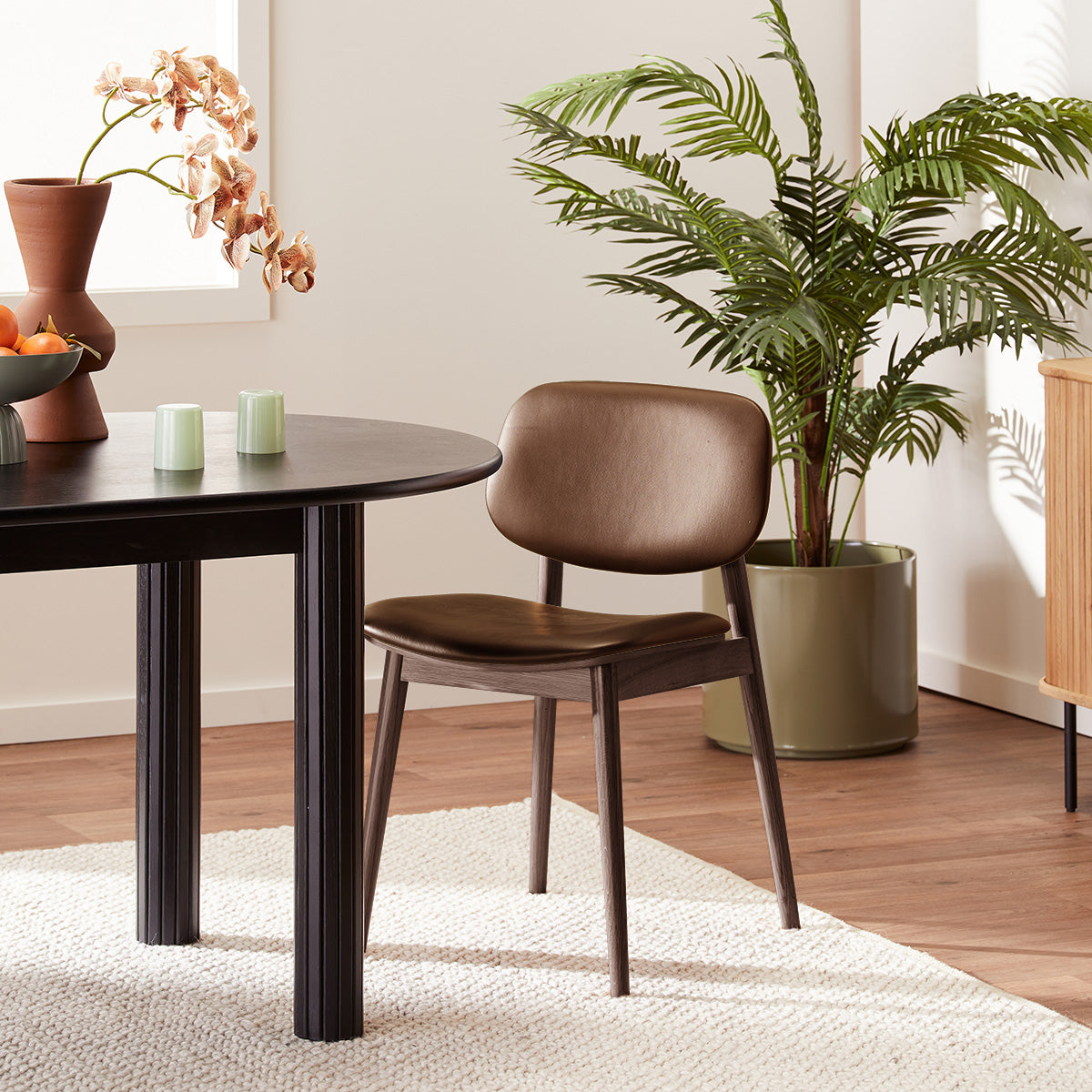 Give your dining space a stunning makeover with the sleek addition of the Lando Leather Dining Chair! This mid-century inspired chair is crafted from solid timber to provide a sturdy and durable structure without compromising on style. The seat and backrest detail a smooth leather upholstery available in various colourways that complement the organic textures of the wood. This piece is a versatile must-have for any contemporary interiors, with its ability to seamlessly blend with other natural and leather finishes throughout your home.