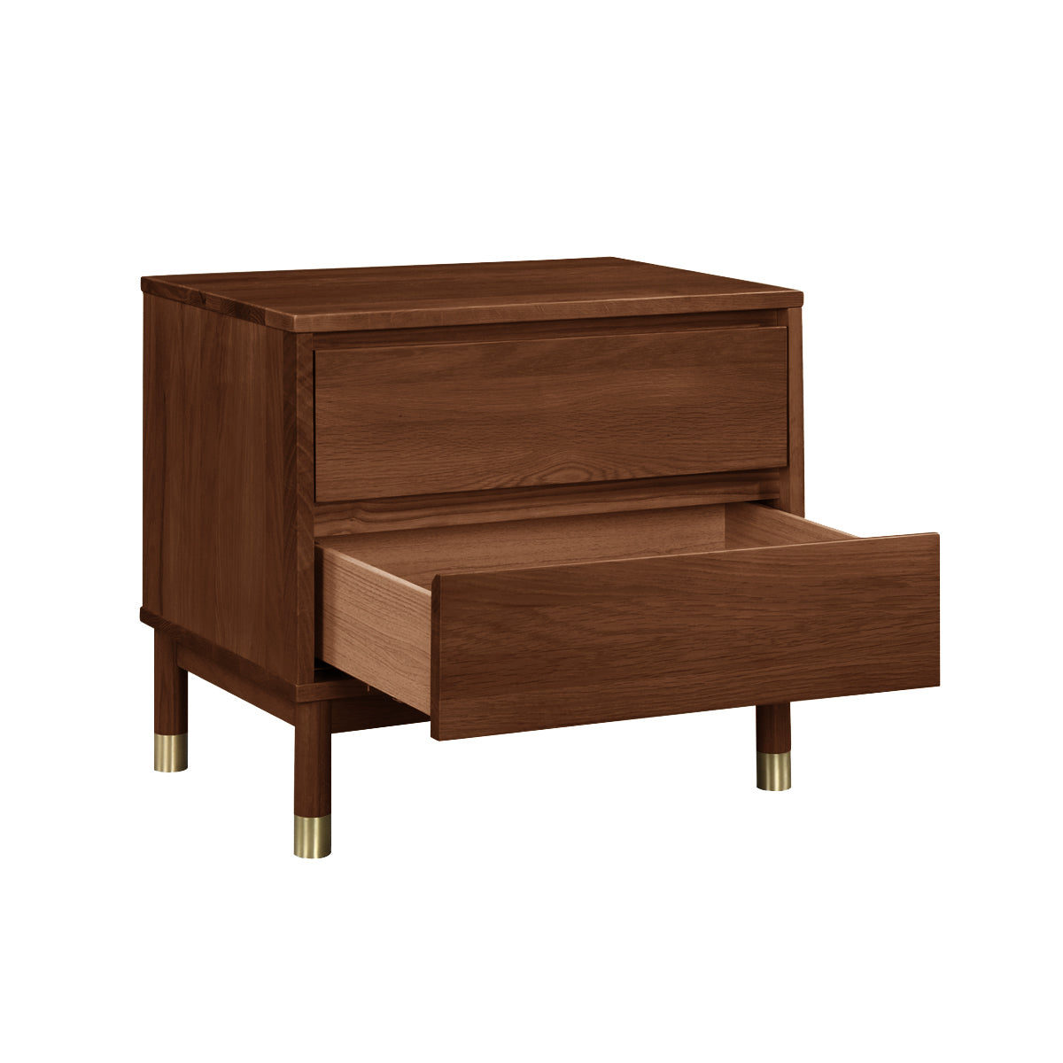 The Marlo Bedside Table combines a sleek design with functional storage. Crafted from American Oak Timber, it features two spacious soft closing drawers with clean, minimalist lines. Elevated by sturdy legs with subtle metallic accents, the Marlo Bedside offers both style and durability. Perfect for keeping your essentials within reach, it seamlessly fits into modern and classic interiors, enhancing your bedrooms aesthetic with its refined simplicity.