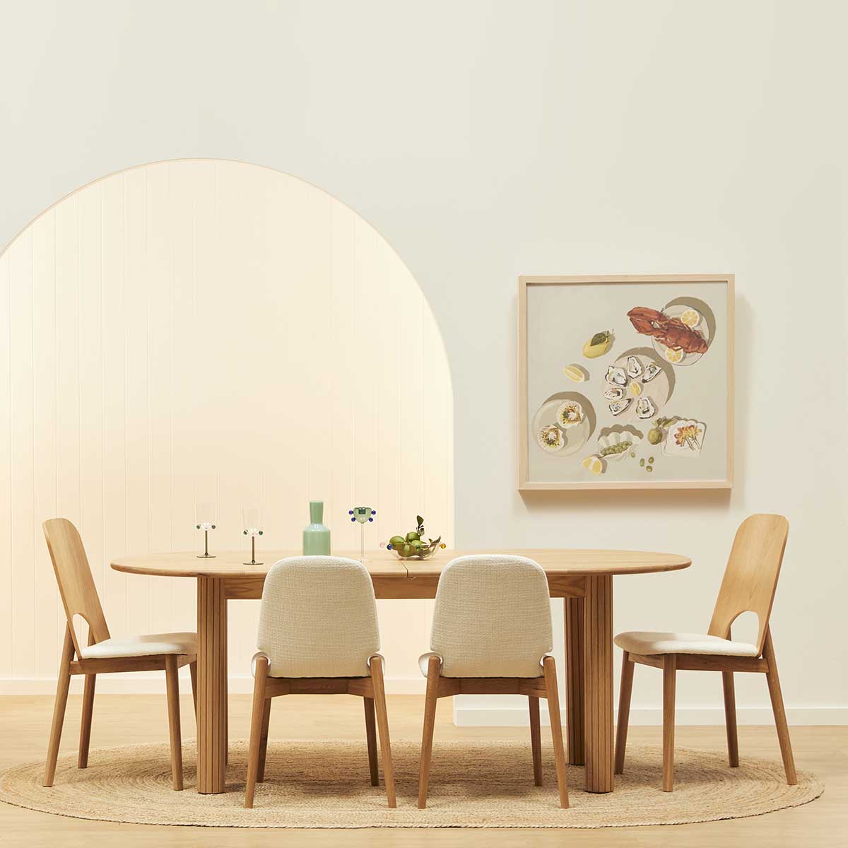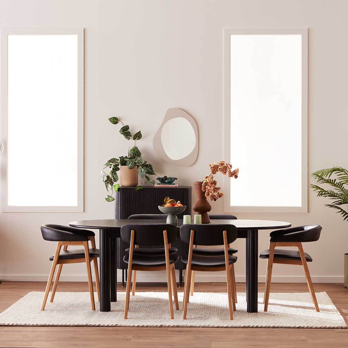 The Noir range is simple yet distinguished, with its timber paneling and curved edges standing out as key style features. The Noir Extension Dining Table is striking and sophisicated, with its curved legs and top making a strong design impact, while the fact that it's extendable makes it practical for both everyday use and dinner parties.
