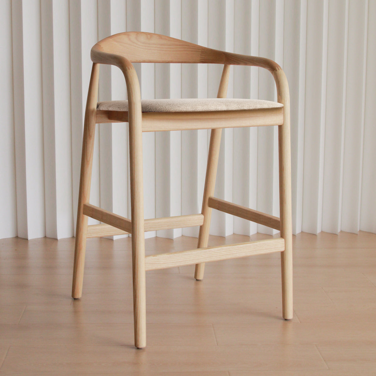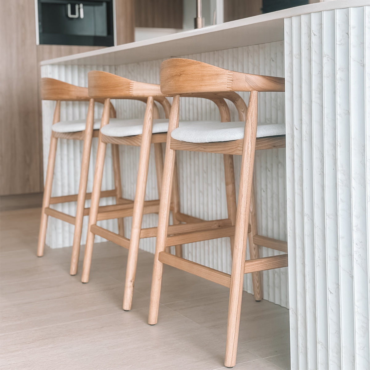 Timelessly designed, the Noris Fabric Bar Stool is a contemporary piece with curved organic lines and refined design details. Built to last your home for years ahead, it features a solid timber frame with rounded edges and a smooth finish. The stunning fabric upholstery offers elegance, softness and visual depth for any kitchen or bar in your home, while its understated combination of colours will provide versatility to suit a range of interior styles.