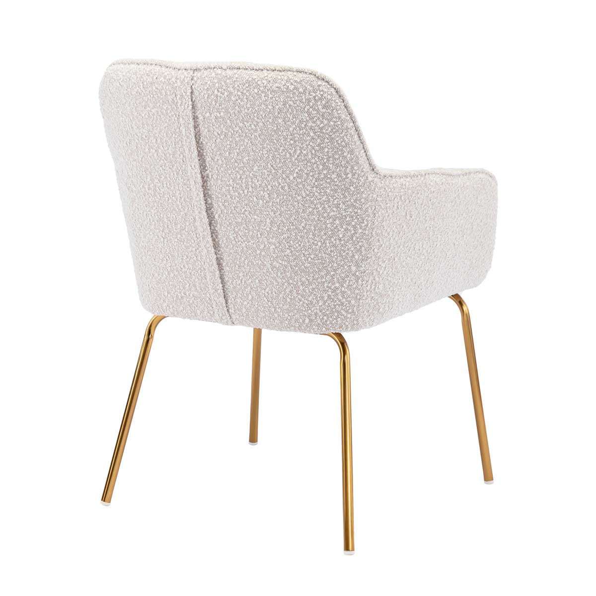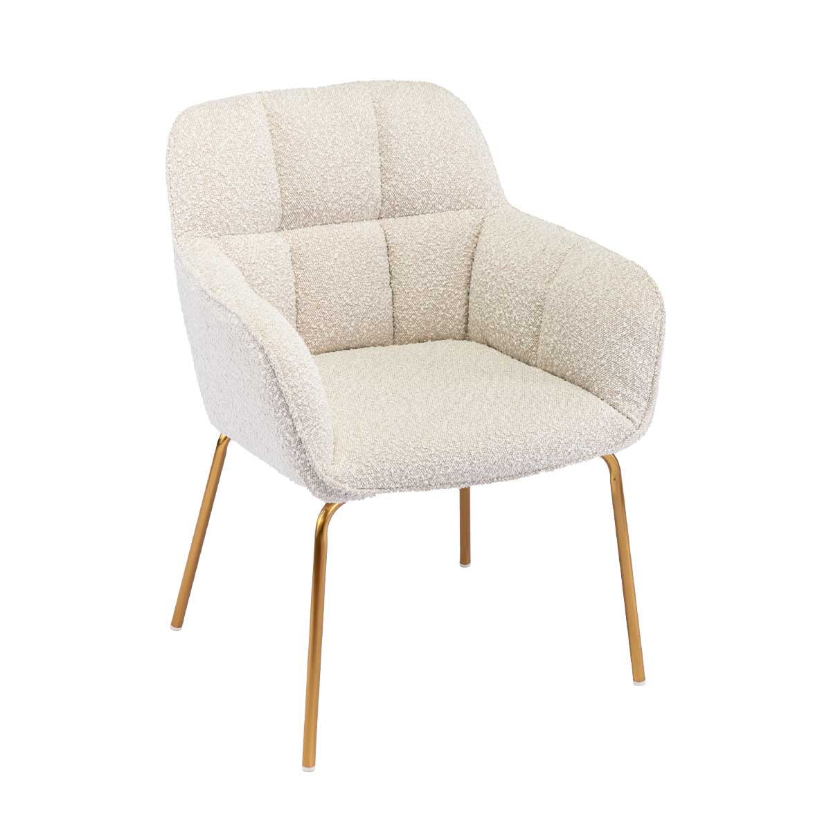 The Stella Boucle Dining Chair features a retro-inspired aesthetic designed with luxurious comfort in mind. Featuring a visually unique padded form, the Stella is crafted with solid steel legs that provide a sturdy foundation for its deep, bucket-style seat. Upholstered in a stunning boucle upholstery, the seat also features supportive armrests that make Stella both incredibly comfortable and versatile to use at the dining table or as an accent chair in any living space.