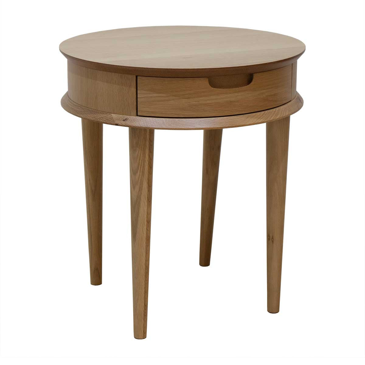 The Stockholm Lamp Table combines simplicity and versatility with its circular design and smooth angled legs. Featuring a narrow drawer for discreet storage, this piece fits seamlessly into a variety of spaces, from neutral to colourful interiors. Whether placed in a bedroom or a lounge, the Stockholm Lamp Table adds a touch of understated elegance to any space, making it a functional and stylish choice for modern living.
