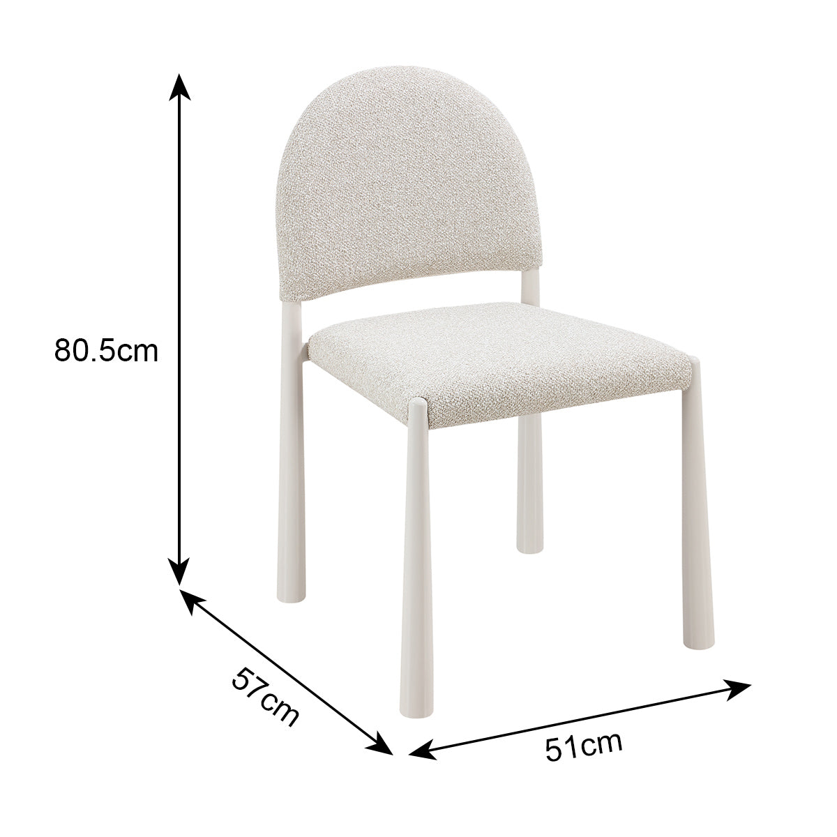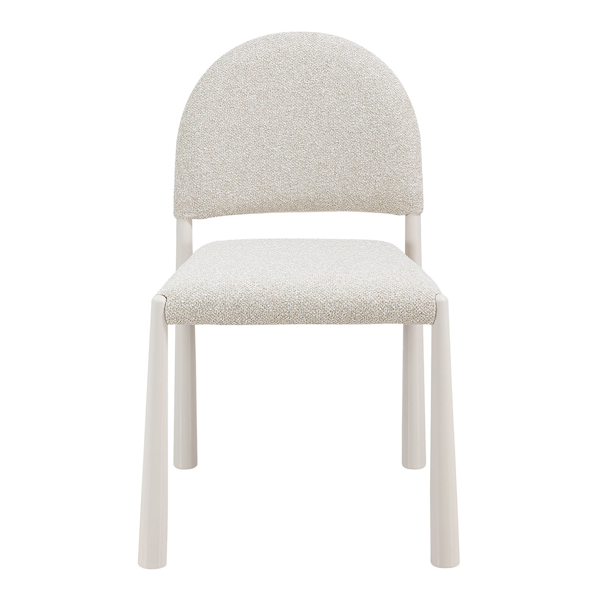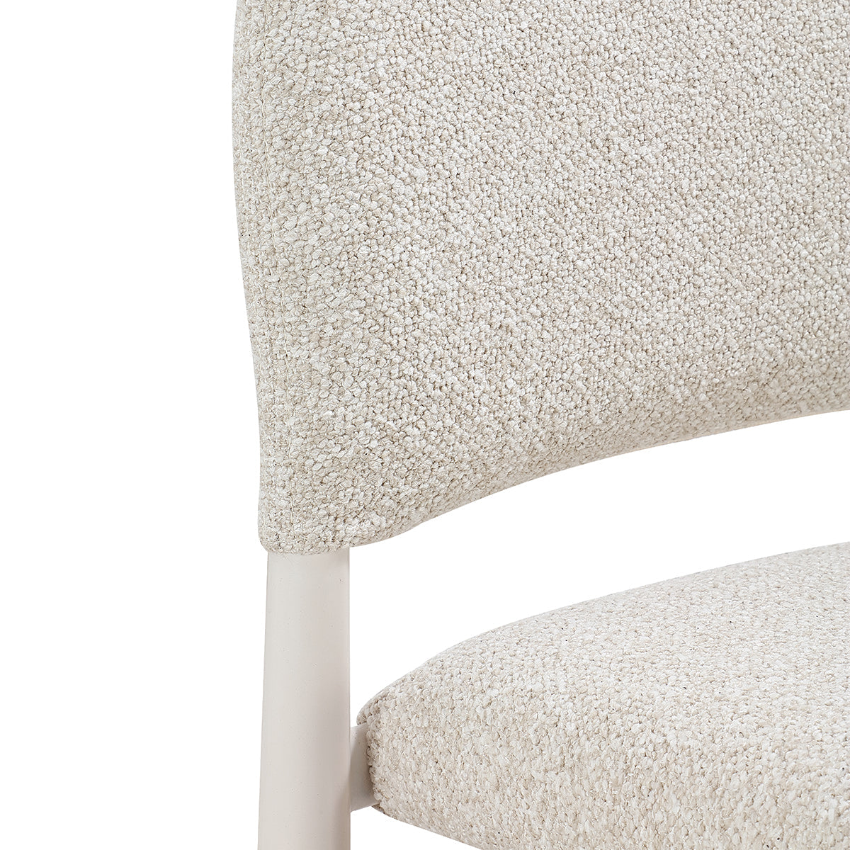 The Valentina Dining Chair is a contemporary approach to a relaxed, minimalist aesthetic. Featuring a stunning arched silhouette, its seat and backrest boast a playful boucle upholstery. The steel legs add another element of texture against the boucle, and detail a unique shape that elevates its look. Perfect for any dining space, the Valentina will bring the perfect balance of comfort and style to your home.
