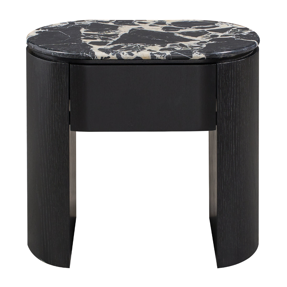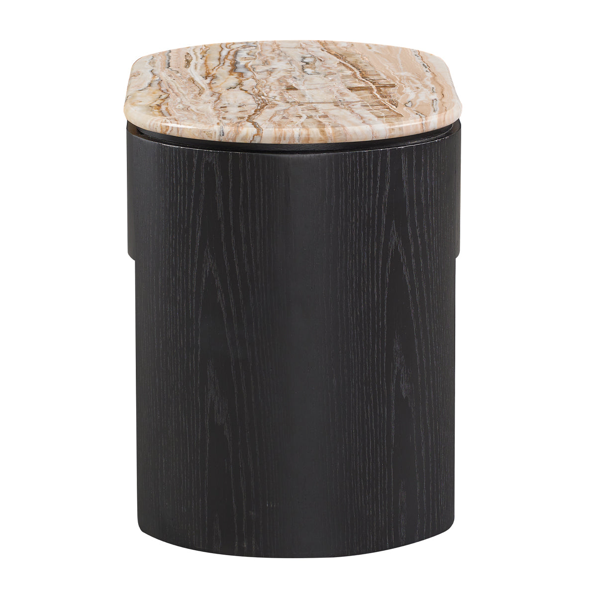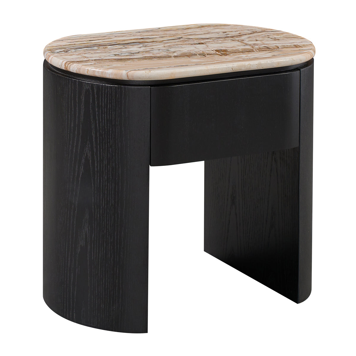 Natural stone top with unique veining, Available in multiple stone tops and oak and walnut base.