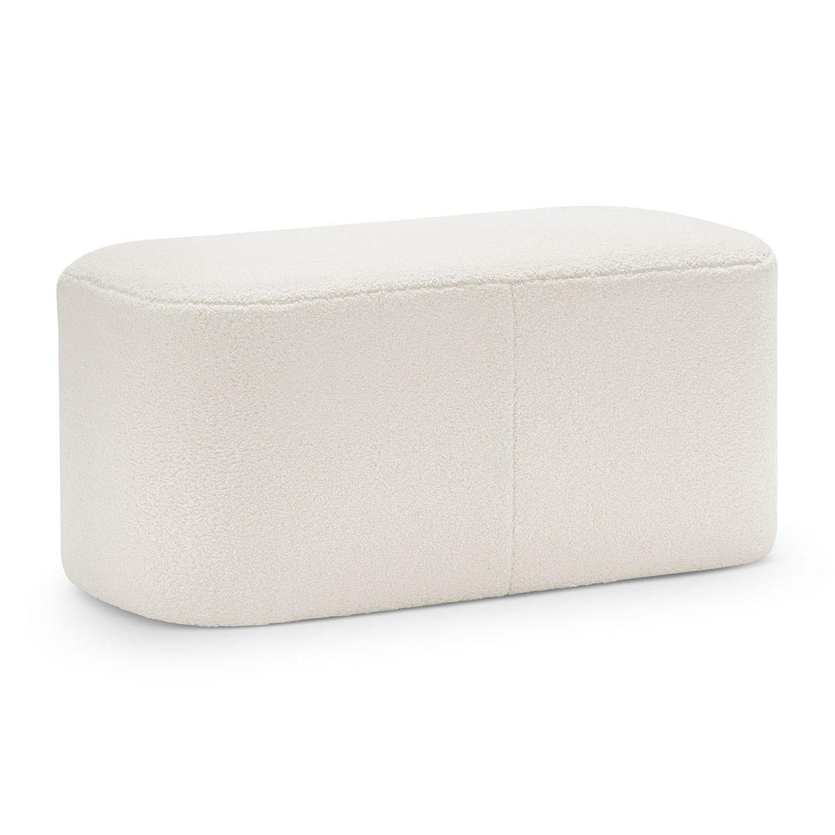Ayla is all about contemporary design with timeless appeal, featuring a cream boucle upholstery, a soft, curved silhouette with double stitched seams. This rectangle ottoman is ideal for additional seating, a footstool, or can even be used as a vanity table seat, its both stunning and versatile.