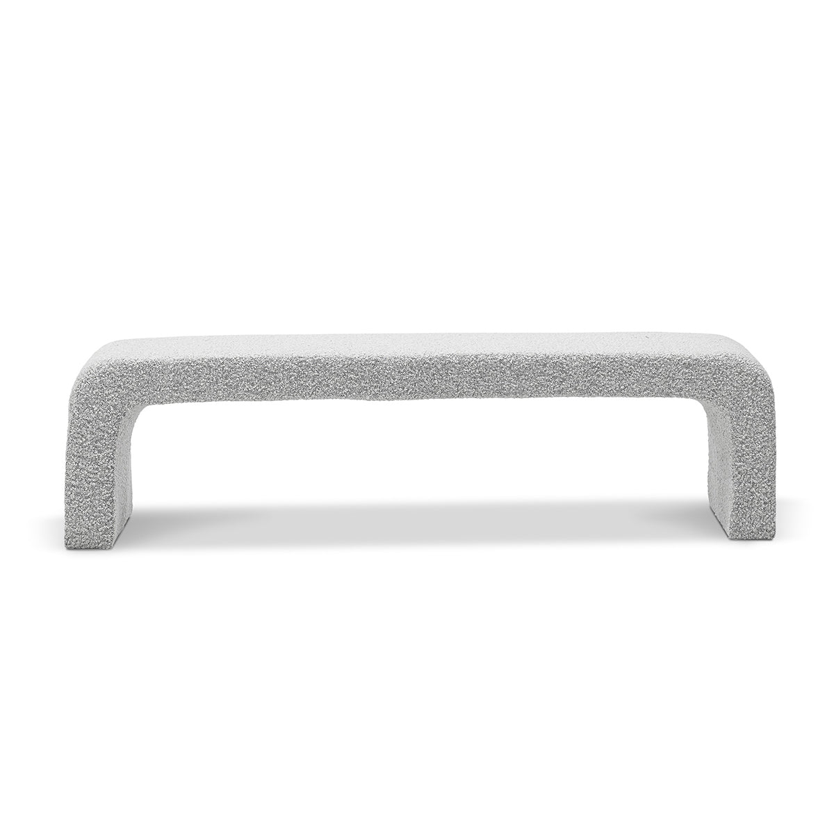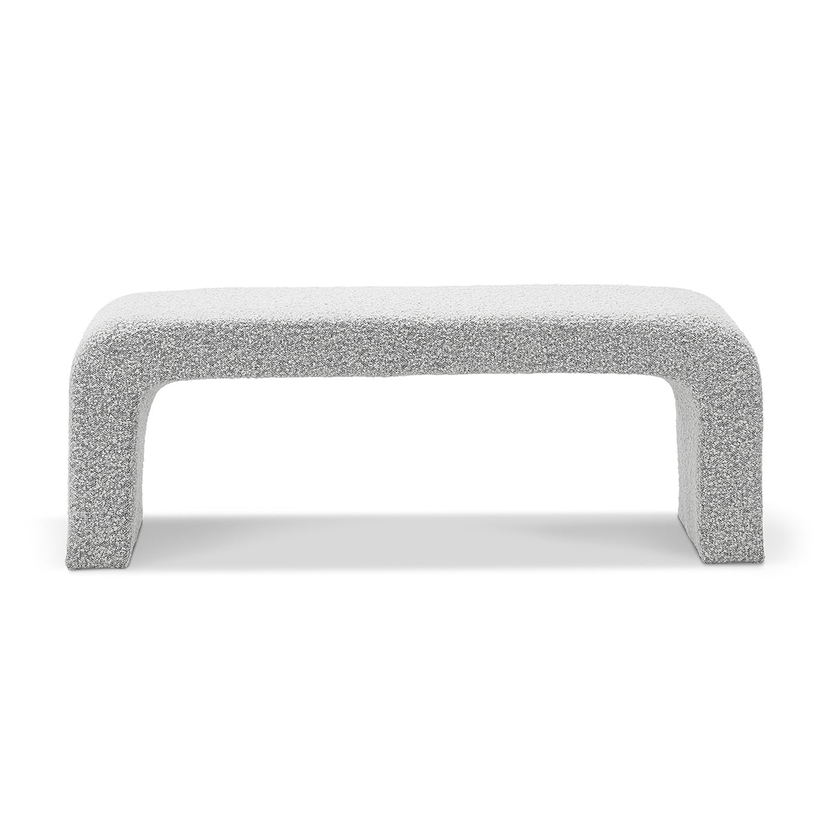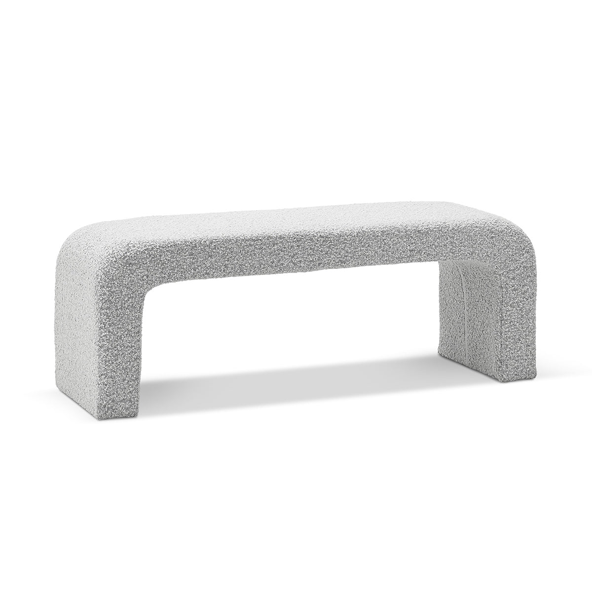 The Camille Arch Bench is a stunning fashion statement, with its curved edges giving it a waterfall-like design. This piece is all about refined, minimalist design and texture through its complete boucle upholstery and soft cushioned padding, making it ideal for an entrance hallway or at the end of your bed.