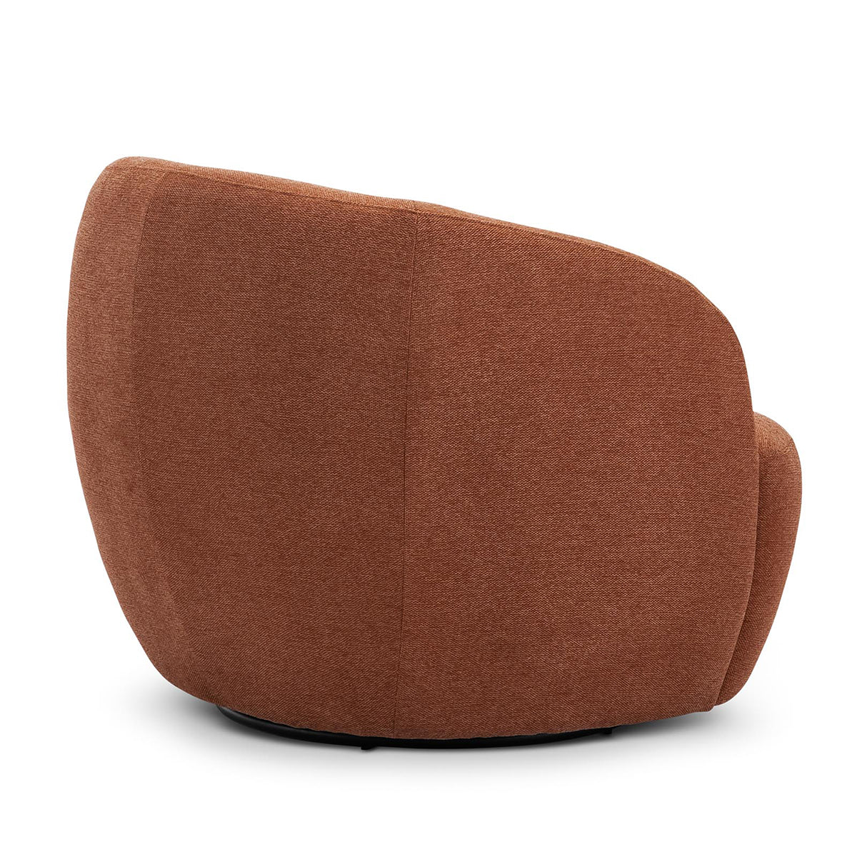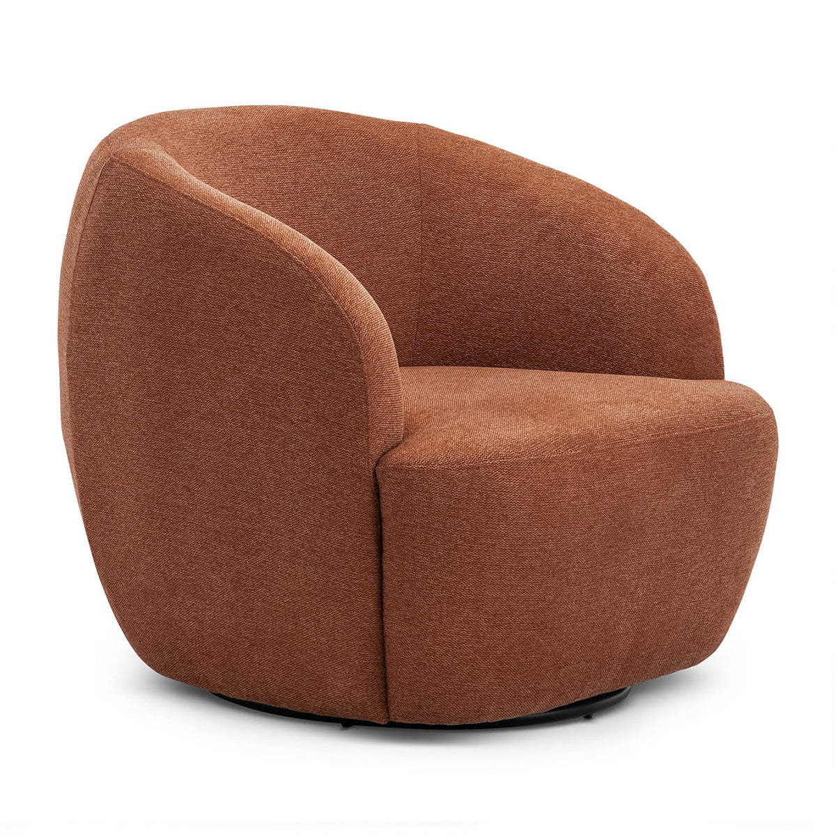 With its soft, curvature silhouette, deco-inspired design, and generous seating proportions with a deep seat and curved back, the Elise Fabric Swivel Armchair is both a design statement and comfort piece for your living space or the corner of any room. This piece features a smooth, swivel steel base for multiple viewing options and added versatility.