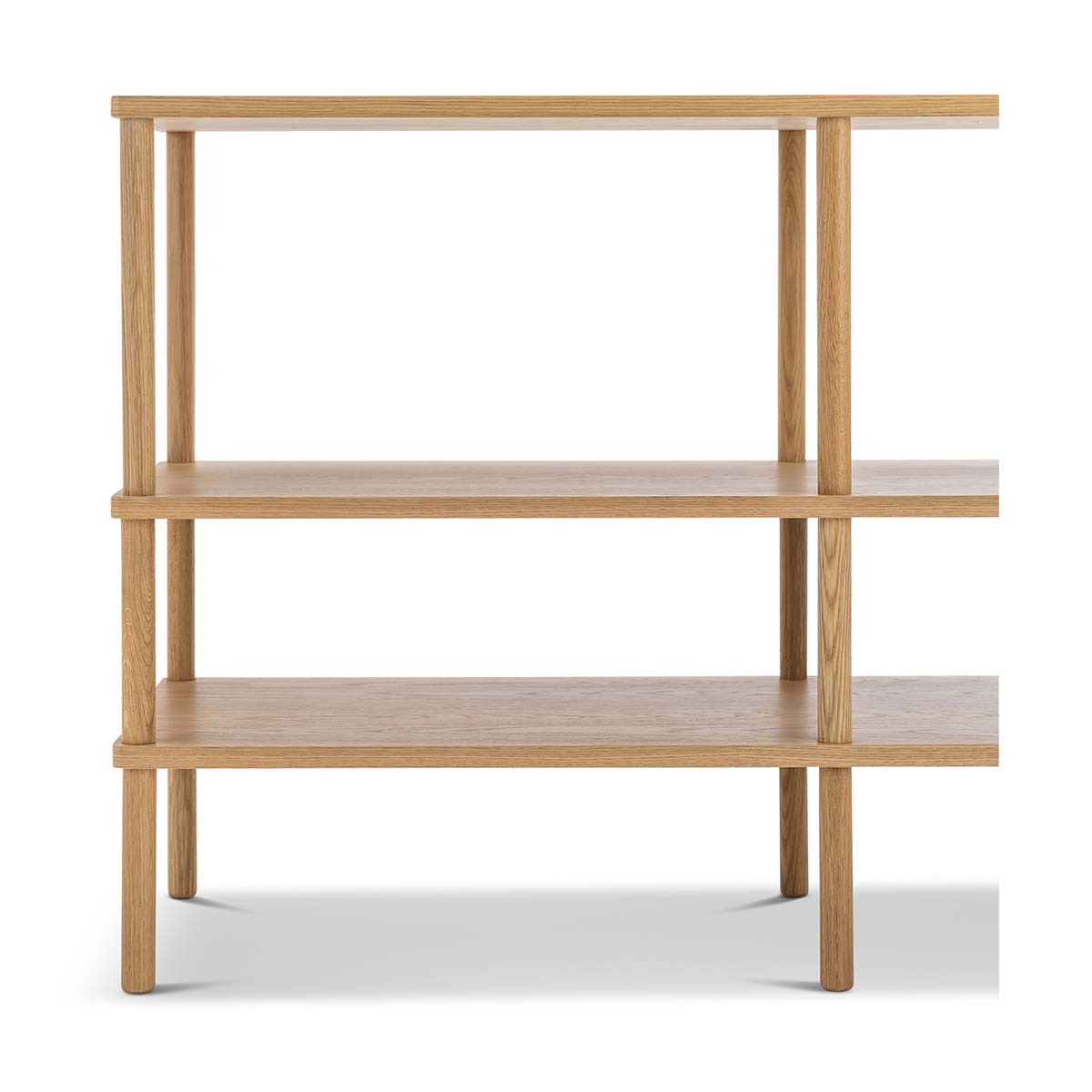 The Ollie shelving units are all about minimalist, Japandi design with a mid-century inspired style. Perfect as a bookshelf or console table, or for laundry and powder rooms with its three wide open shelves, neat geometry, and soft rounded corners.